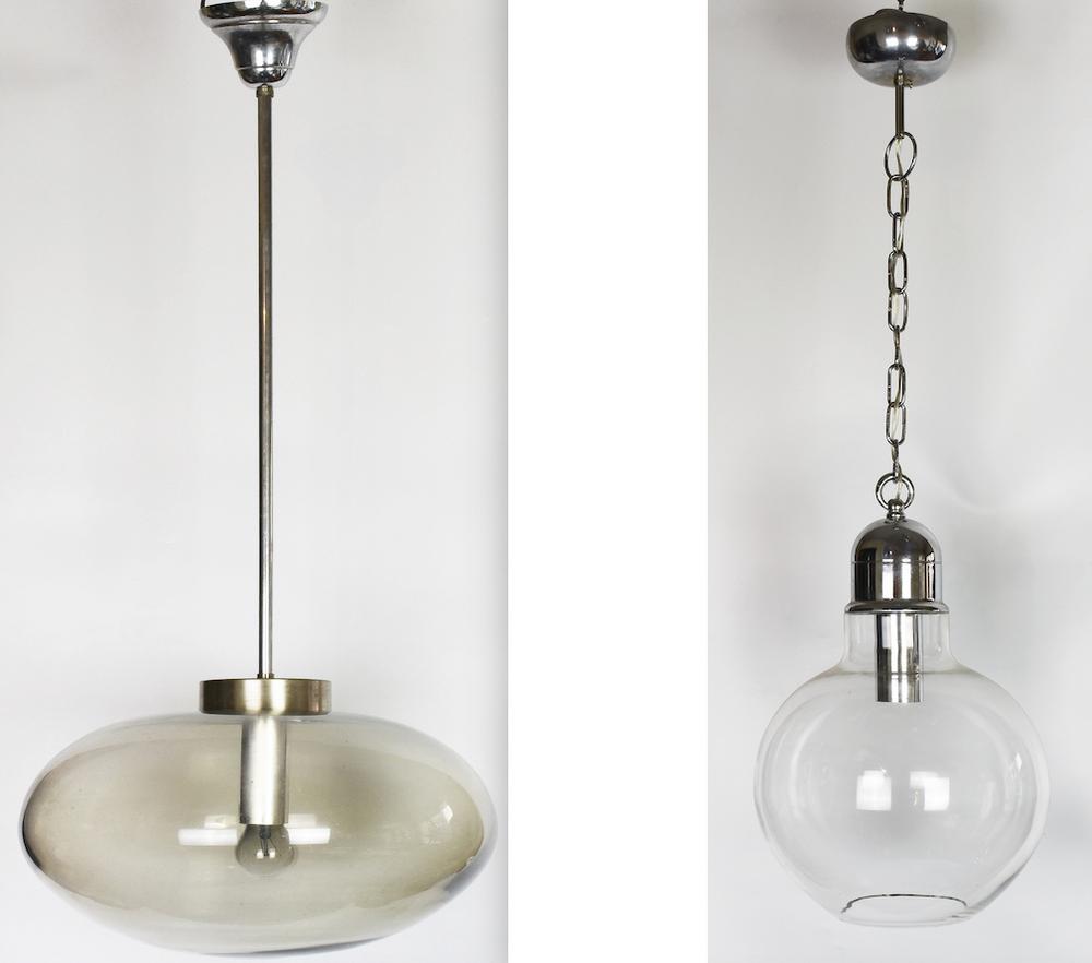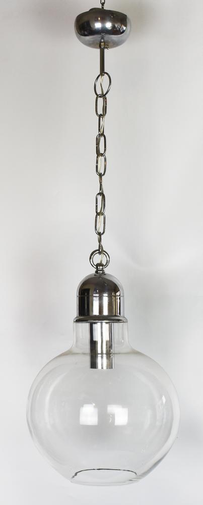 Lampada a sospensione in alluminio e vetro soffiato trasparente, anni '70 del XX secolo