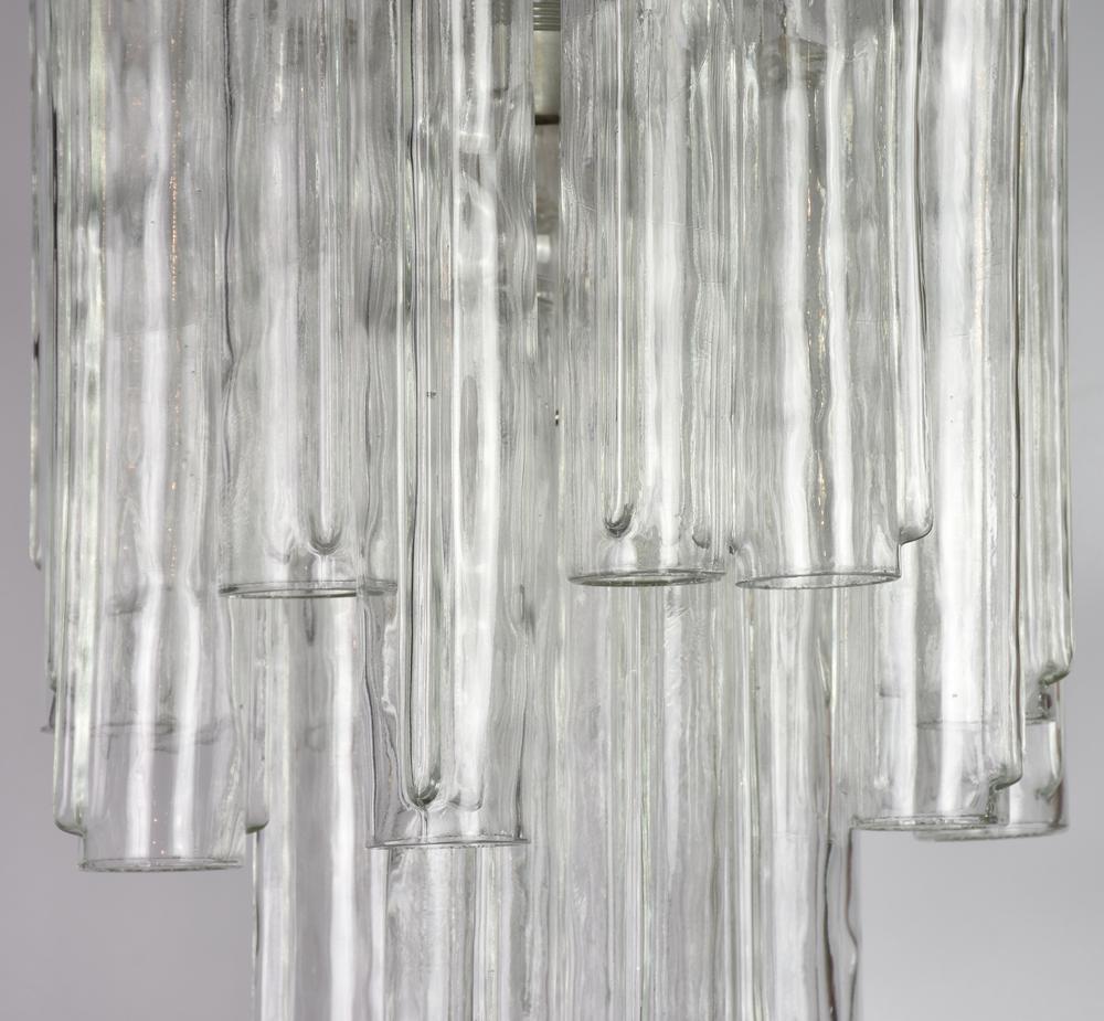 acciaio e vetro di Murano, struttura a cilindri in vetro disposti a spirale a digradare