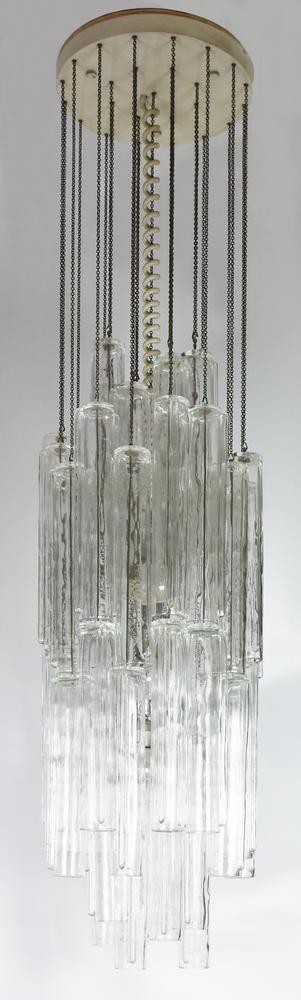 LAMPADARIO A SOSPENSIONE IN VETRO DI MURANO, anni '60 del XX secolo acciaio e...