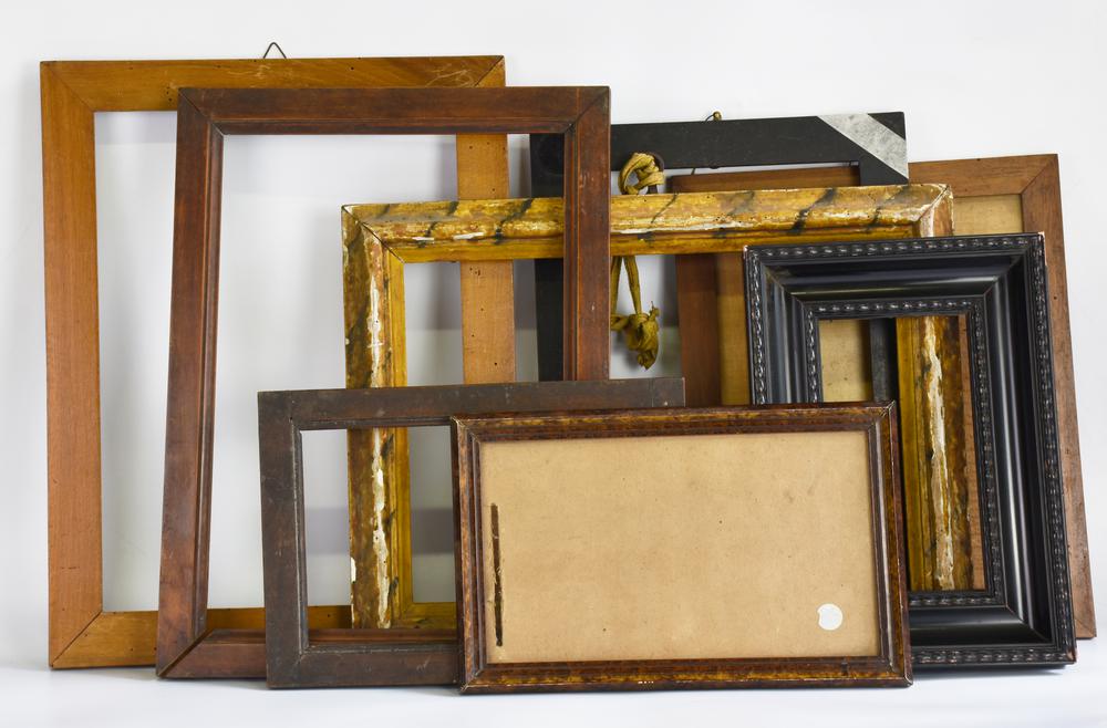 LOTTO DI OTTO CORNICI epoca, finiture e dimensioni varie: cm 47,5x37,5; cm...