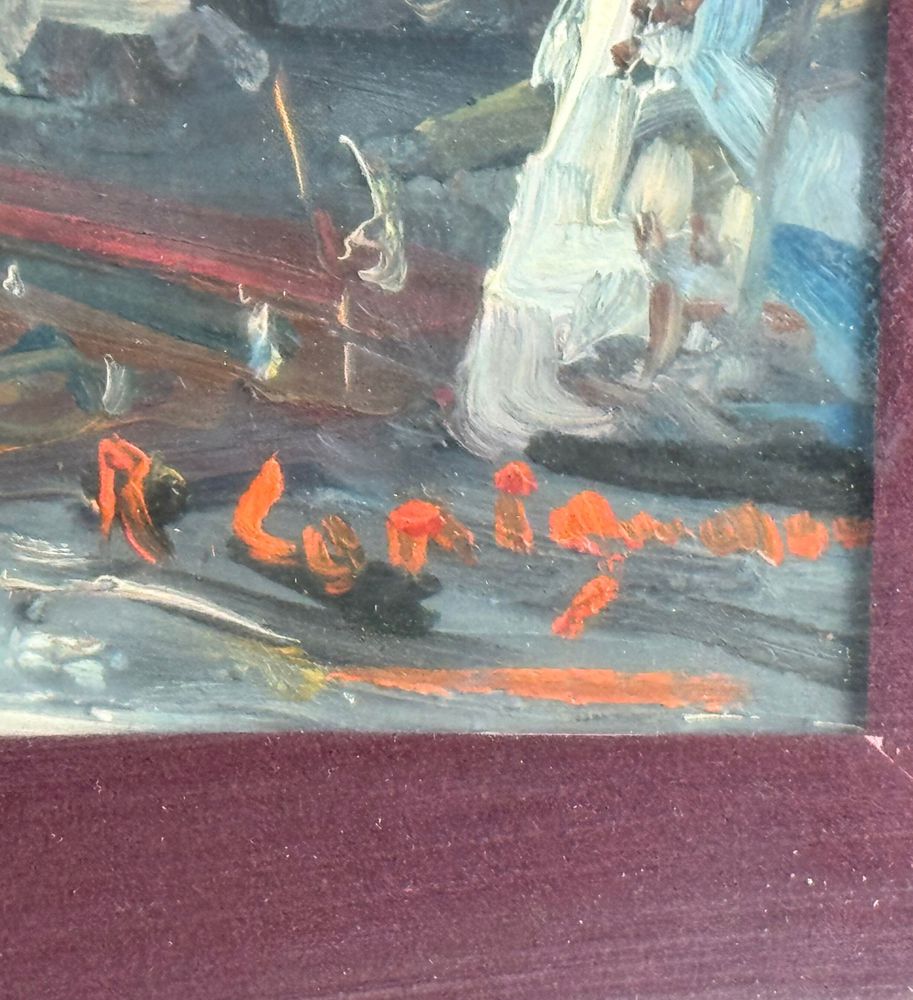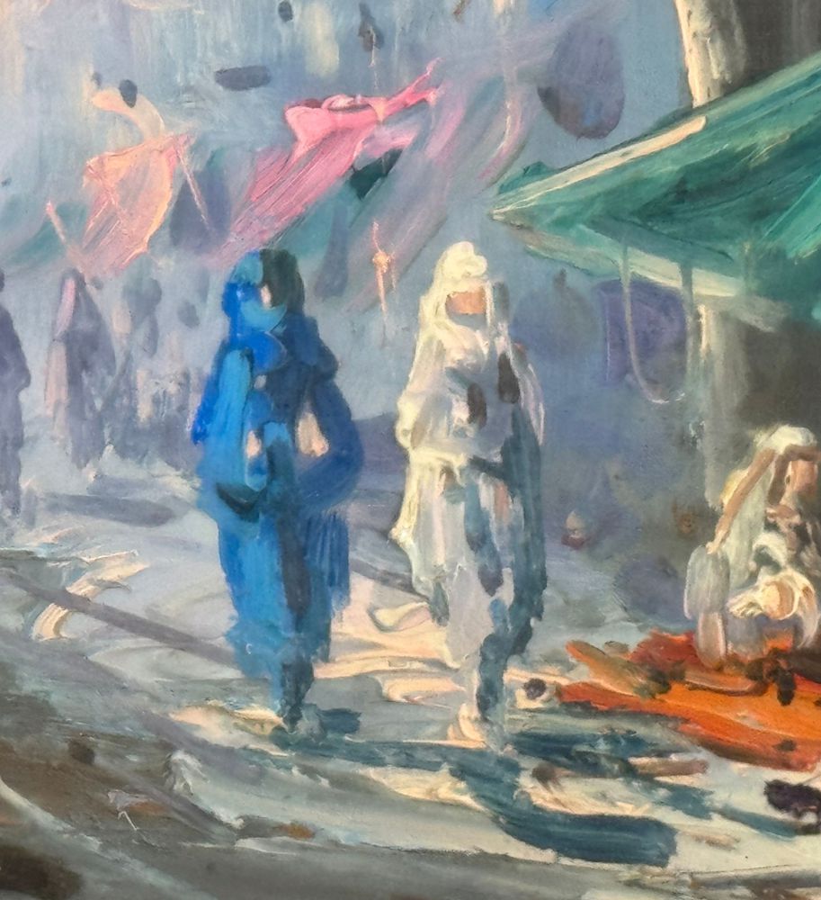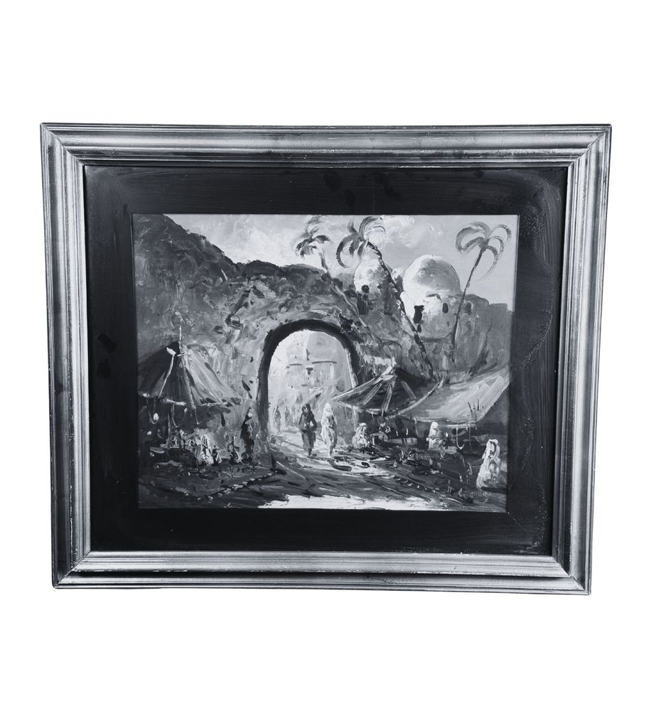 Dipinto olio su pannello, periodo XX secolo scuola Italiana, raffigurante Personaggi al mercato. Dimensioni compreso cornice: 58x68 cm. Dimensioni interno cornice: 38x48 cm. Reca firma in basso a destra da Roberto Carignani. Opera in buone condizioni.