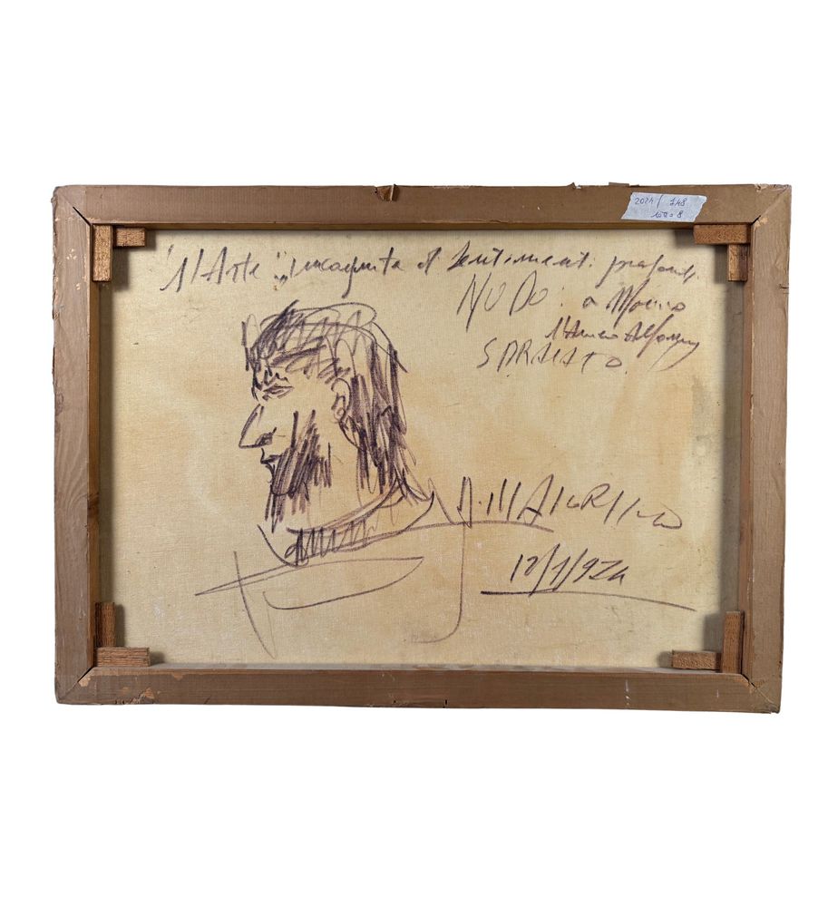 Dipinto olio su tela, periodo XX secolo scuola Italiana, raffigurante Nudo sdraiato. Dimensioni: 70x50 cm. Reca firma in basso a destra da A. Maiorino. Opera in buone condizioni e di ottima qualità artistica.