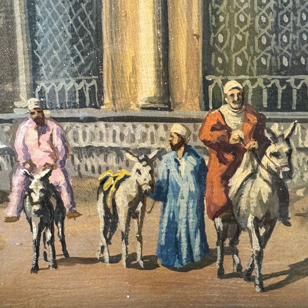 Dipinto tempere su carta, periodo inizio XX secolo scuola Italiana, raffigurante Scena orientale. Dimensioni interno cornice: 24x30 cm. Reca firma in basso a sinistra da De Gregorio (artista non identificato).