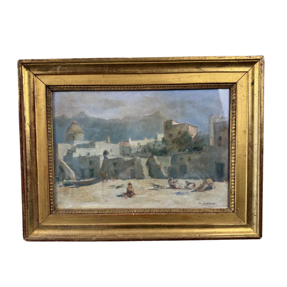Dipinto olio su cartoncino, periodo XX secolo 1930 - 1940 scuola Italiana, raffigurante Marina con personaggi. Dimensioni interno cornice: 33x23 cm. Dimensioni compreso cornice: 42x32 cm. Firmato in basso a destra da R. Orsini. Opera in buone condizioni con lievi segni di vissuto come da foto allegate.