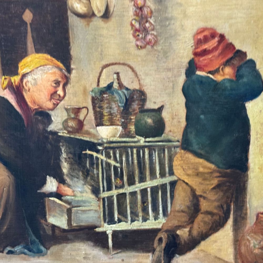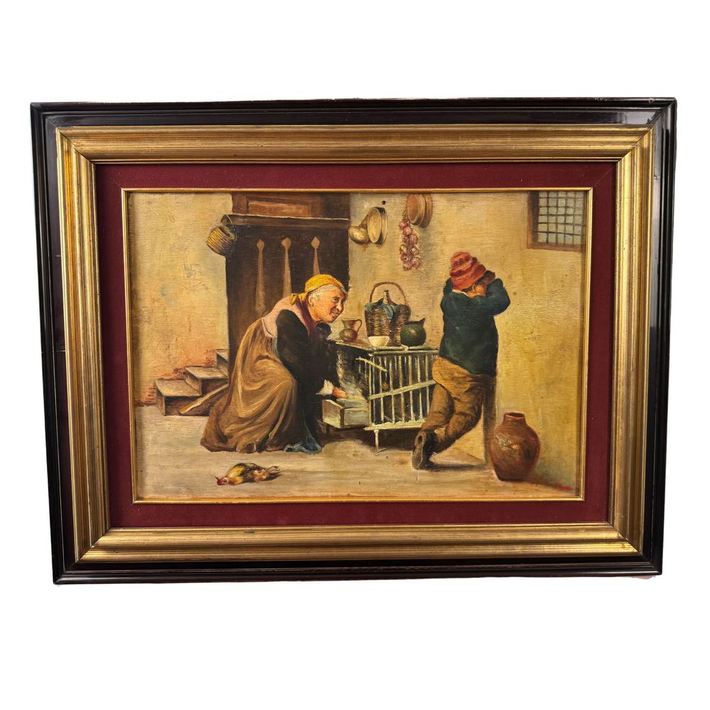 Dipinto olio su tavola, periodo XX secolo scuola Italiana, raffigurante Scena interna con personaggi. Dimensioni interno cornice: 54x37 cm. Dimensioni compreso cornice: 74x57 cm. Firma in basso a destra di difficile lettura. Opera in buone condizioni.