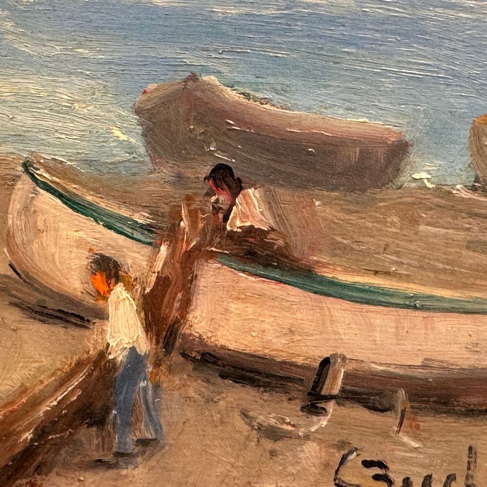 Dipinto olio su tavola, periodo XX secolo scuola Italiana, raffigurante Marina. Dimensioni interno cornice: 24x18 cm. Dimensioni compreso cornice: 32x26 cm. Reca firma in basso a destra da Gaetano Bocchetti (1888 - 1990). Opera in buone condizioni.