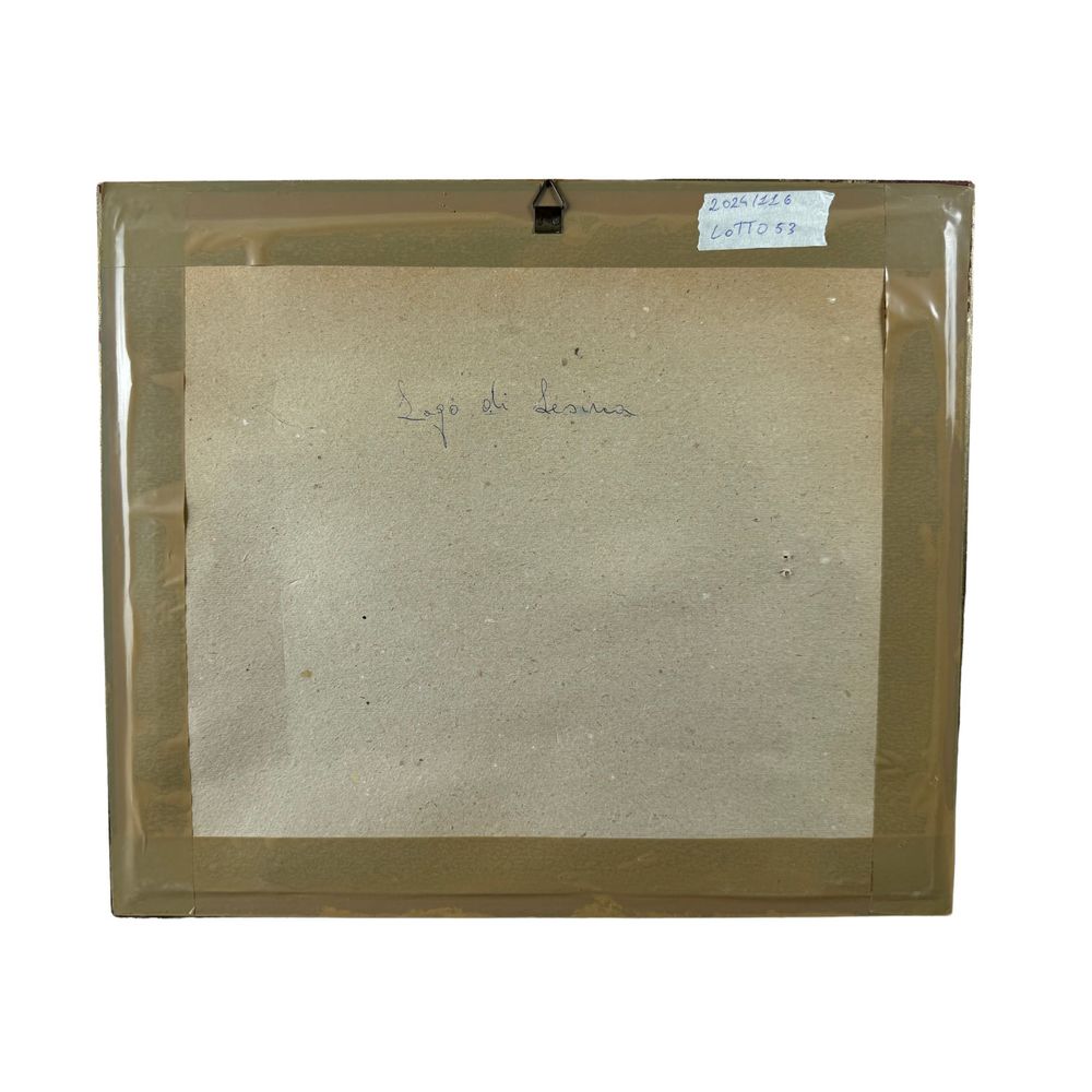 Dipinto olio su tavola, periodo XX secolo scuola Italiana, raffigurante Scena con lago. Dimensioni interno cornice: 23x18 cm, dimensioni compreso cornice: 39x34 cm. Reca firma in basso a sinistra da Gaetano Bocchetti (1888 - 1990). Opera in buone condizioni.