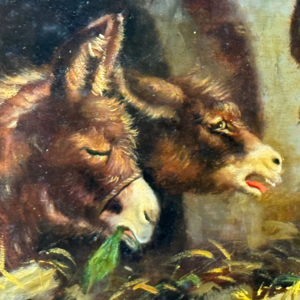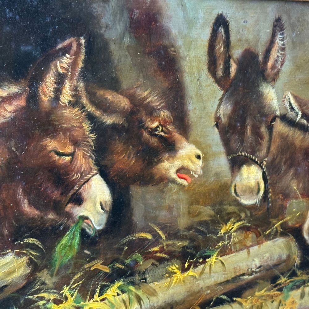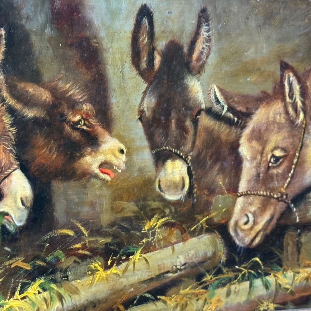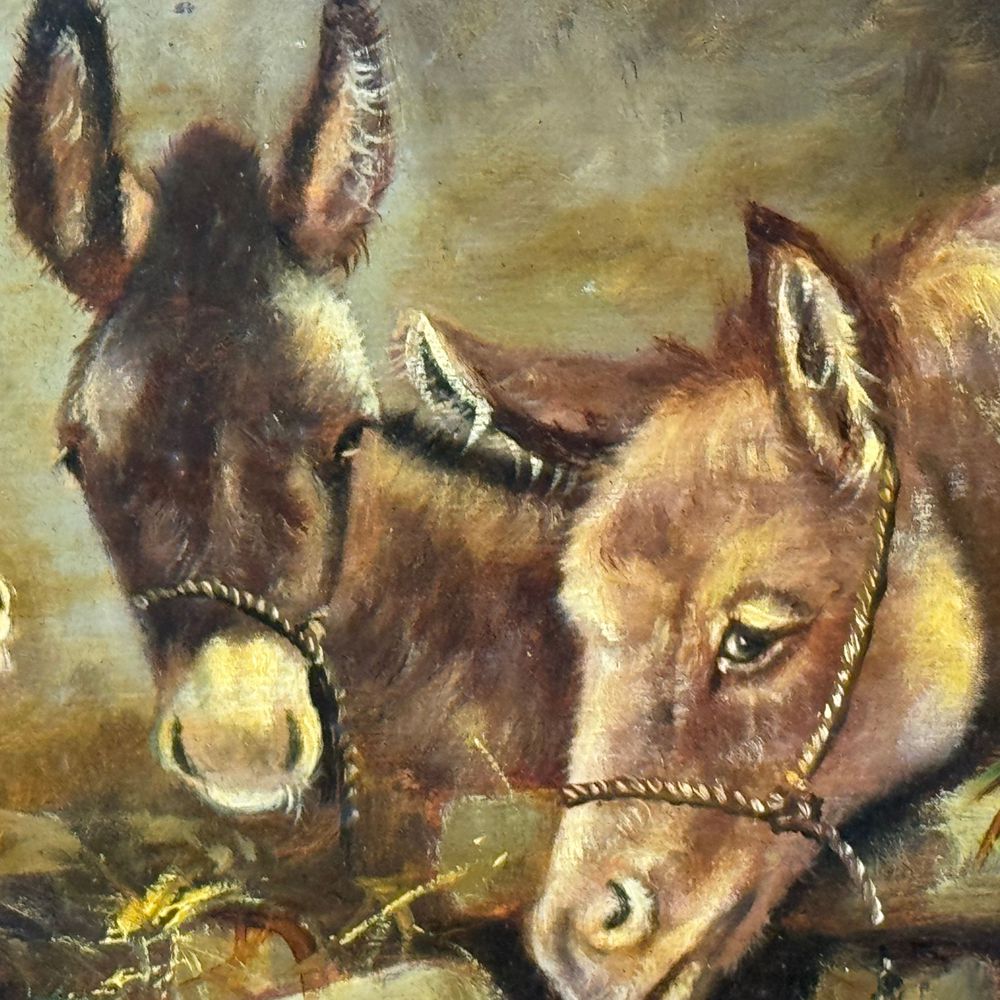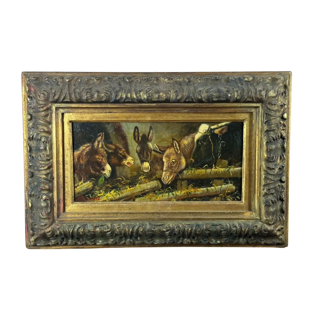 Dipinto olio su tavola, periodo XX secolo scuola italiana, raffigurante Asini. Dimensioni interno cornice: 40x20 cm. Dimensioni compreso cornice: 60x40 cm. Reca firma in basso a sinistra da Eduardo Cerrone (1935 - 2010). Opera in buone condizioni.