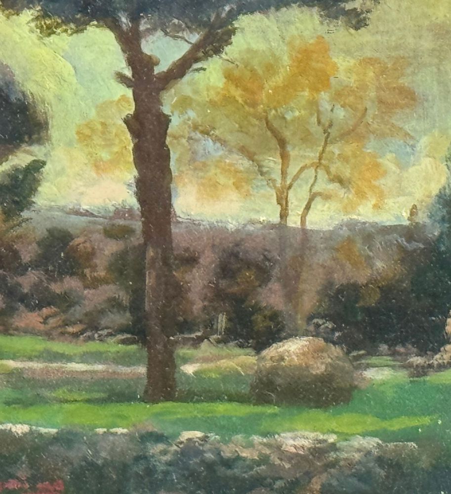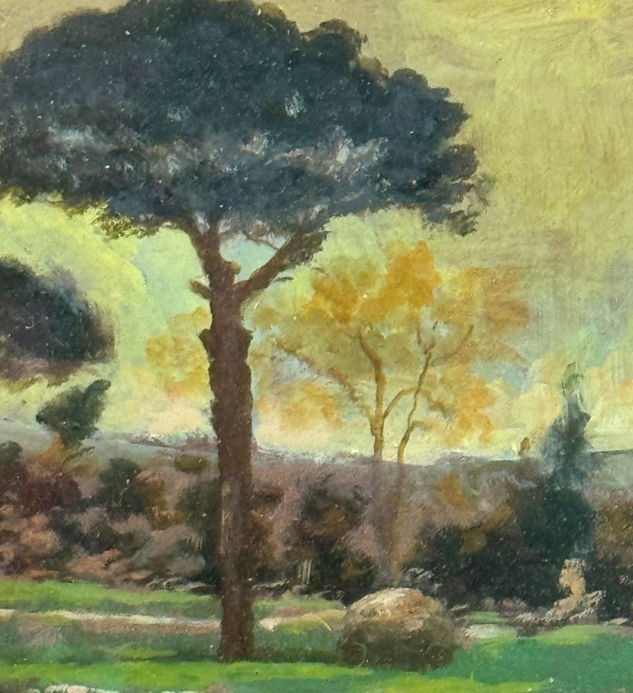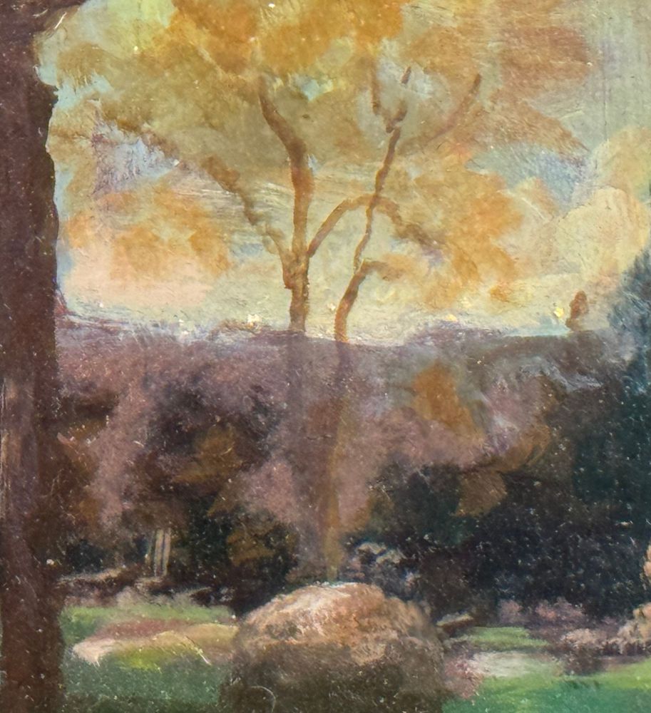 Dipinto olio su pannello, periodo XX secolo scuola Italiana, raffigurante Paesaggio. Dimensioni compreso cornice: 39x43 cm. Dimensioni interno cornice: 19x23 cm. Reca firma in basso a sinistra da artista non identificato. Opera in buone condizioni.