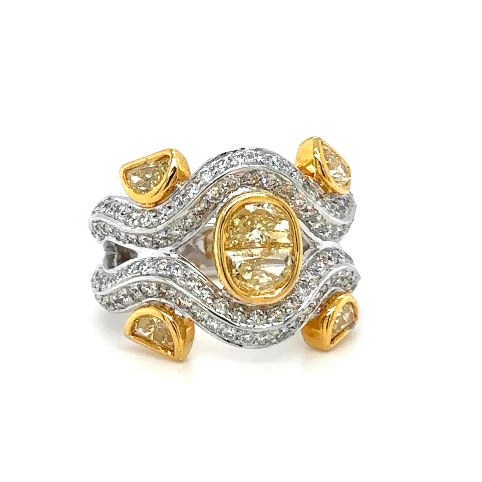 ANELLO IN ORO BIANCO E GIALLO 18K 13.00 GR CON 6 DIAMANTI FANCY GIALLO INTENSO PER 1.51 CARATI PUREZZA VS + DIAMANTI PER 1.00 CARATI COLORE D-F PUREZZA VS - TAGLIA - 6.5 - CERTIFICATO GEMMOLOGICO MAROZ DIAMONDS LTD MEMBRO ISRAEL DIAMOND EXCHANGE - HR2011
