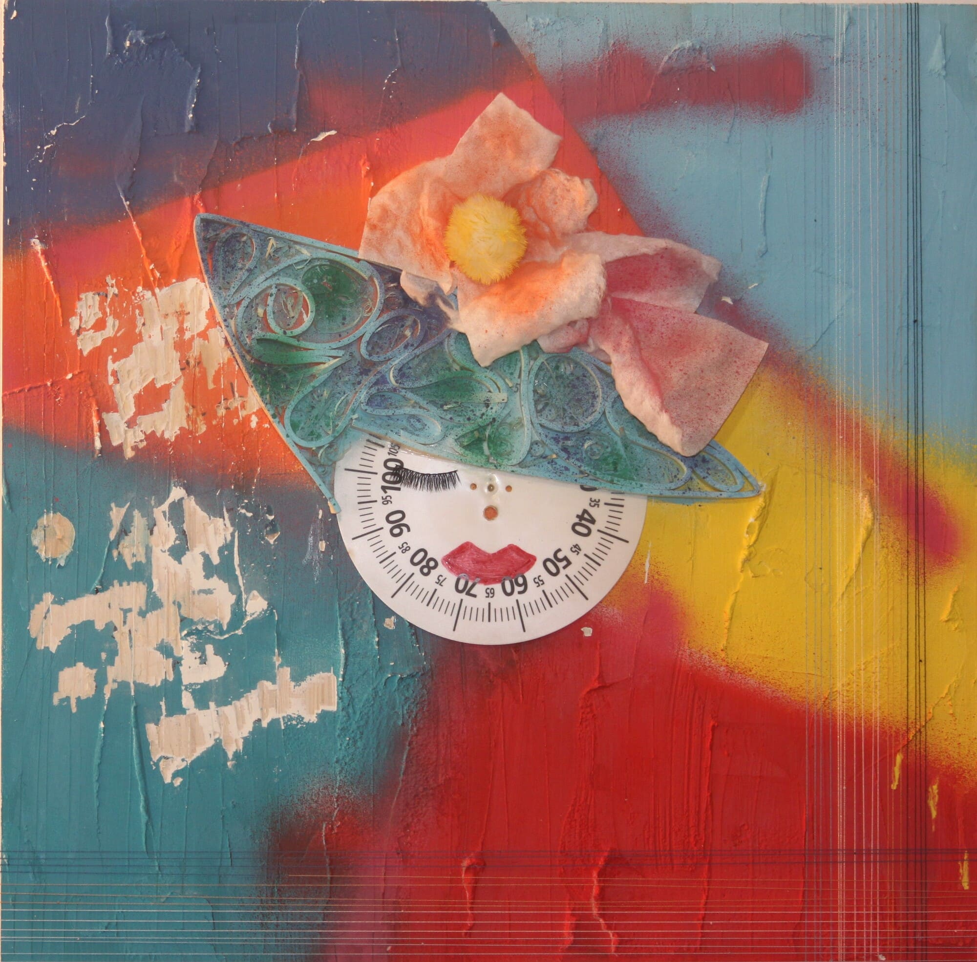 MATERIALE: base legno, sfondo gesso, materiali di recupero, acrilici e spray