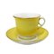 Dodici tazze da tè in porcellana gialla con bordo dorato dotate di piattino