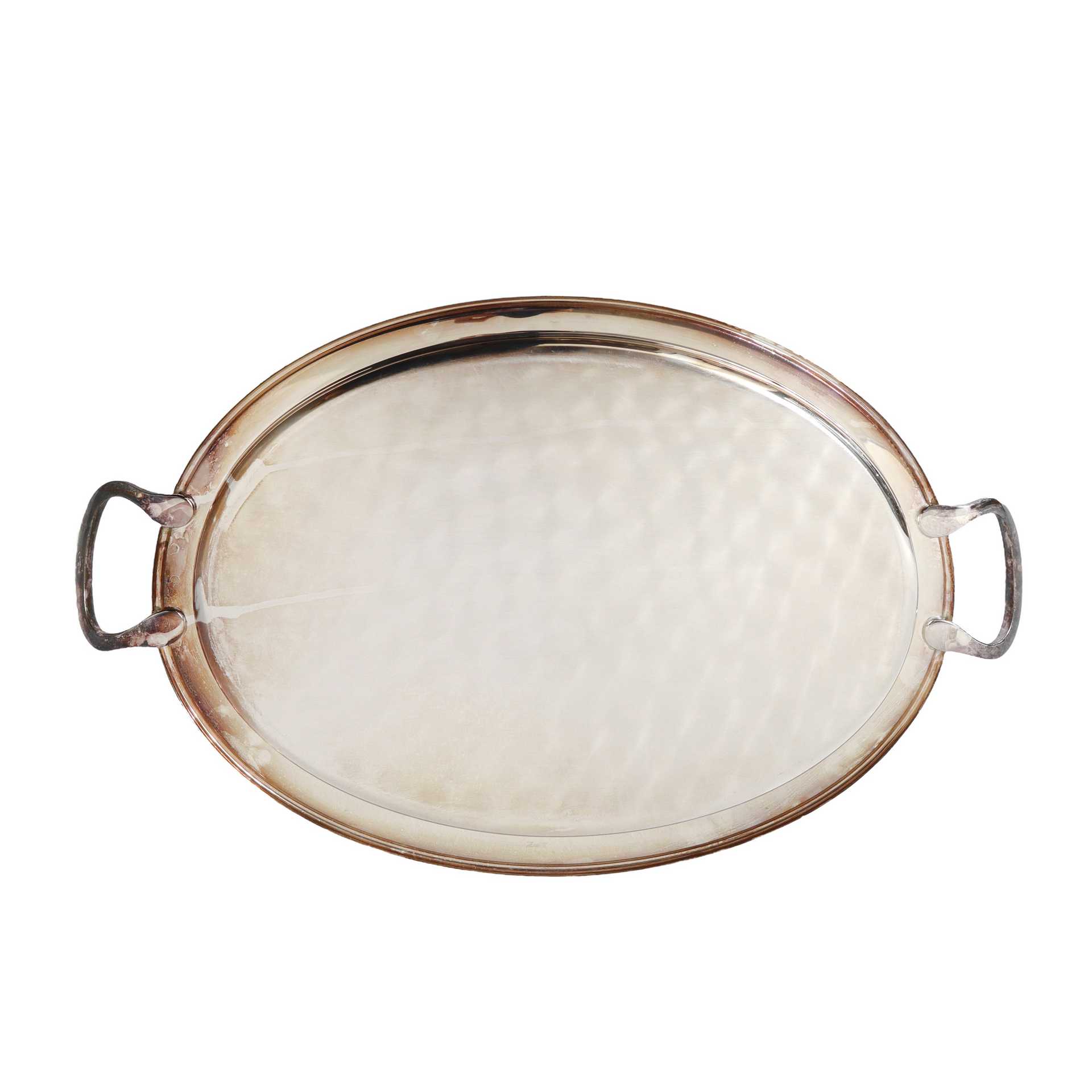 Vassoio ovale con manici in Sheffield. Cm 61x36 Firmato Zanetto. Firmato Zanetto.