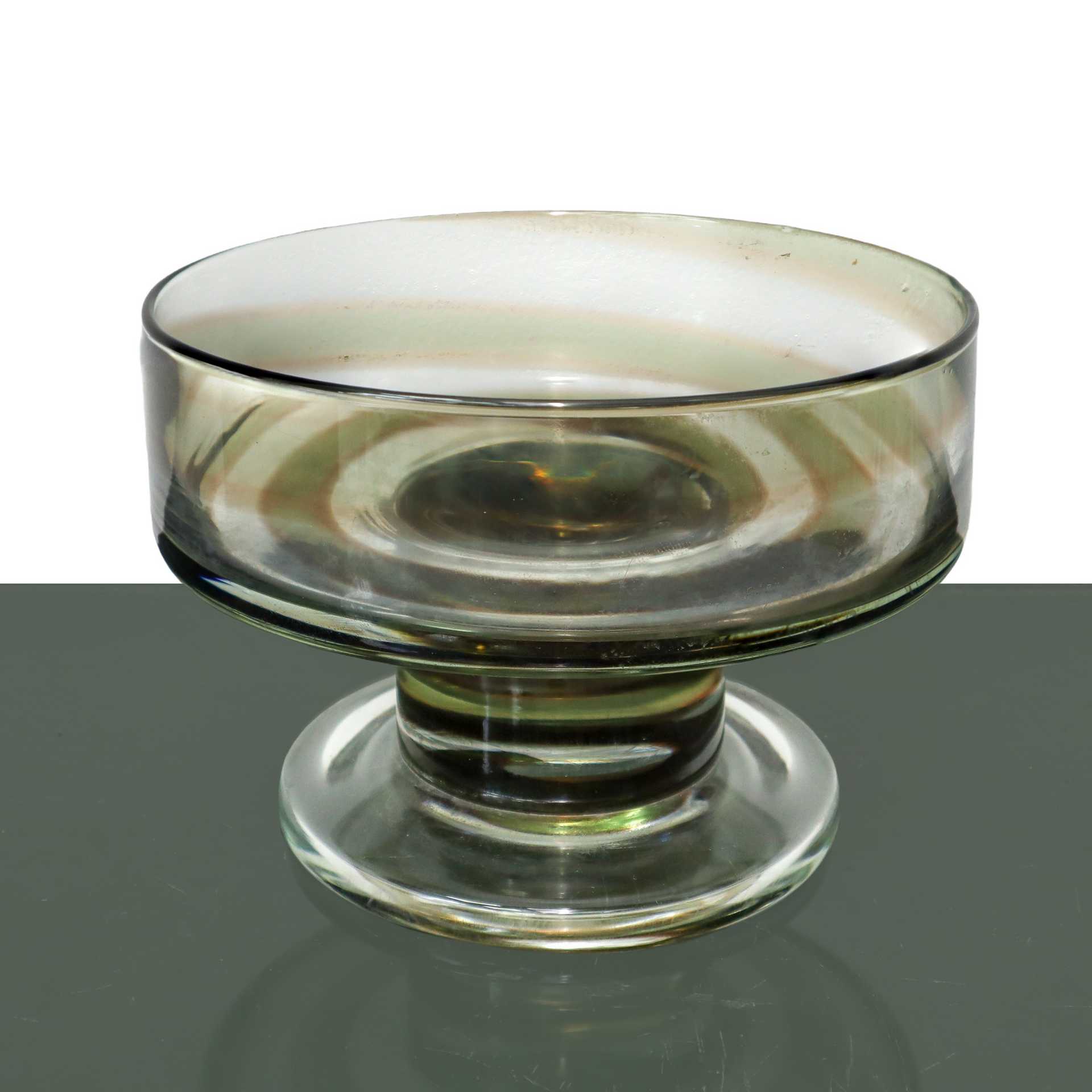 Alzatina in vetro trasparente, decoro spirale marrone