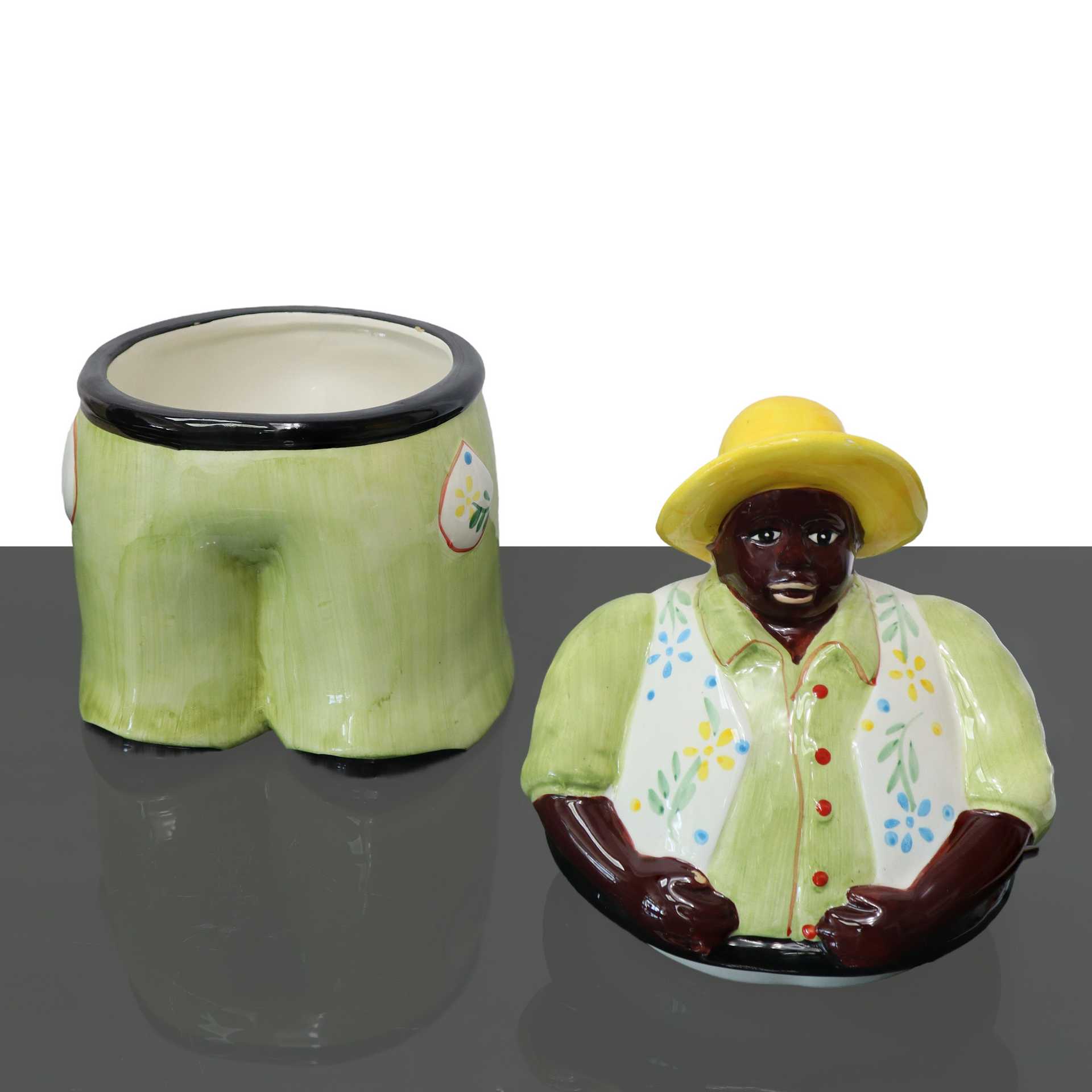 Villa d'Este - Biscottiera nero con vestito verde Venchi H cm 26,5