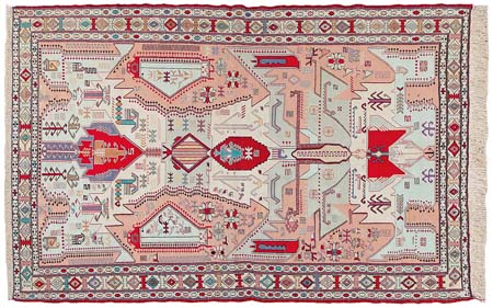 Kilim di vecchia manifattura. In seta, a motivo Sumak.