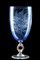 Riccamente incisa a motivi floreali. Un decoro a anello dorato con inserti in vetro nero di Murano separa il calice dalla base.