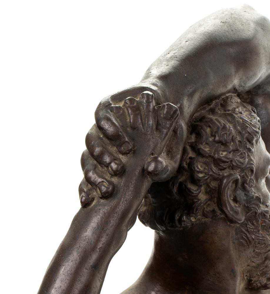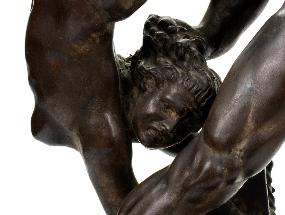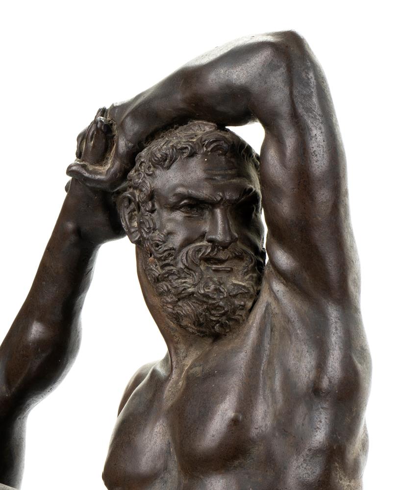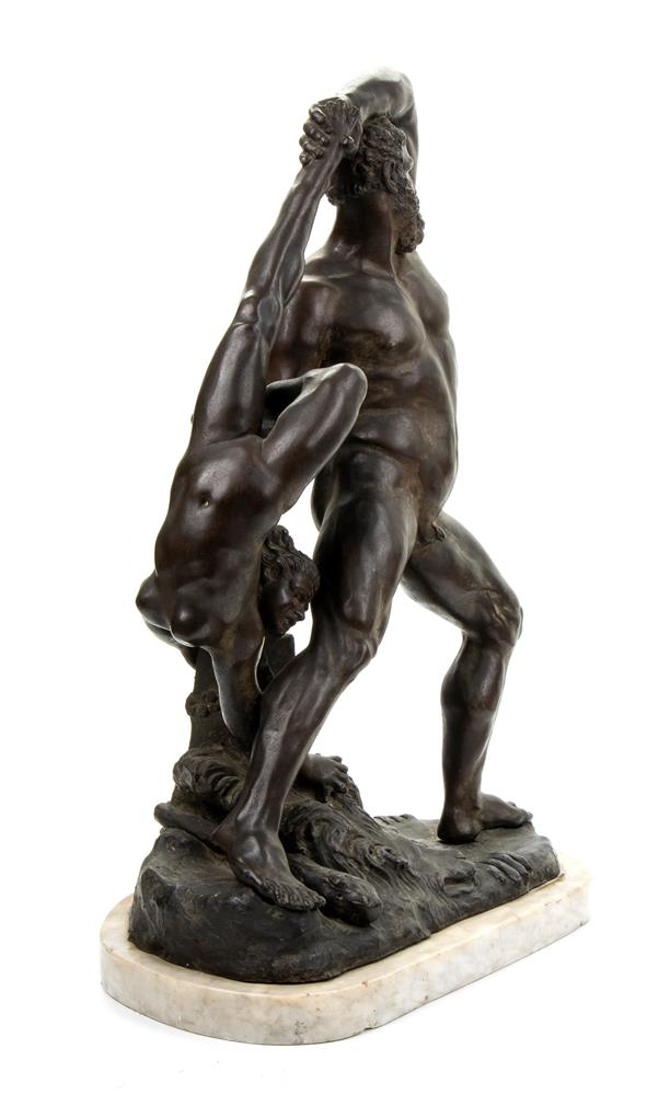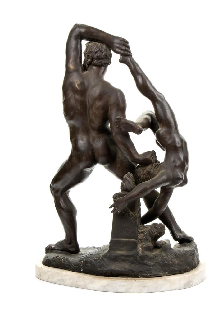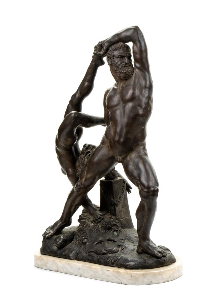 Scultura bronzea raffigurante Ercole e Lica su base di marmo