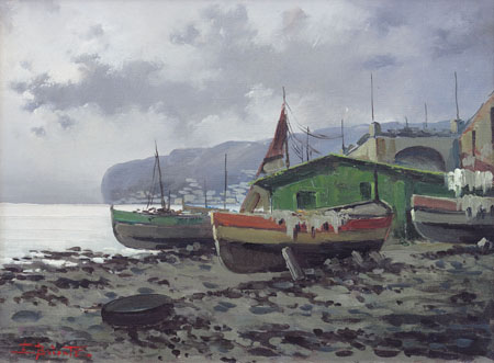 BRIANTE EZELINO Napoli 1901 - Roma 1977Barche sulla spiaggiaolio su tela cm....