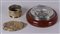 A lot consisting of a barometer, a brass vide poche and a matching bottle rack.