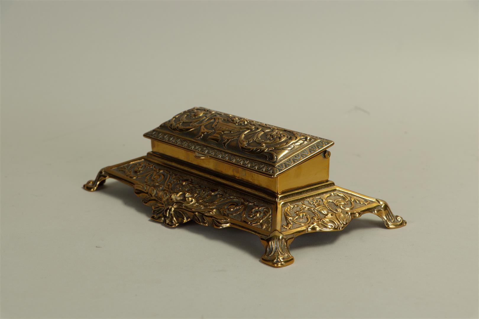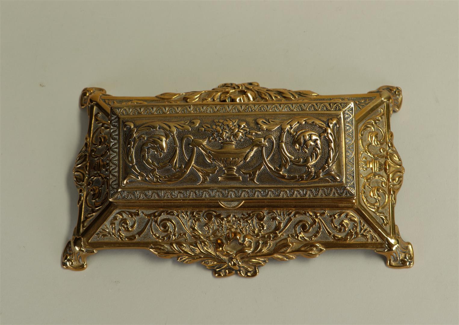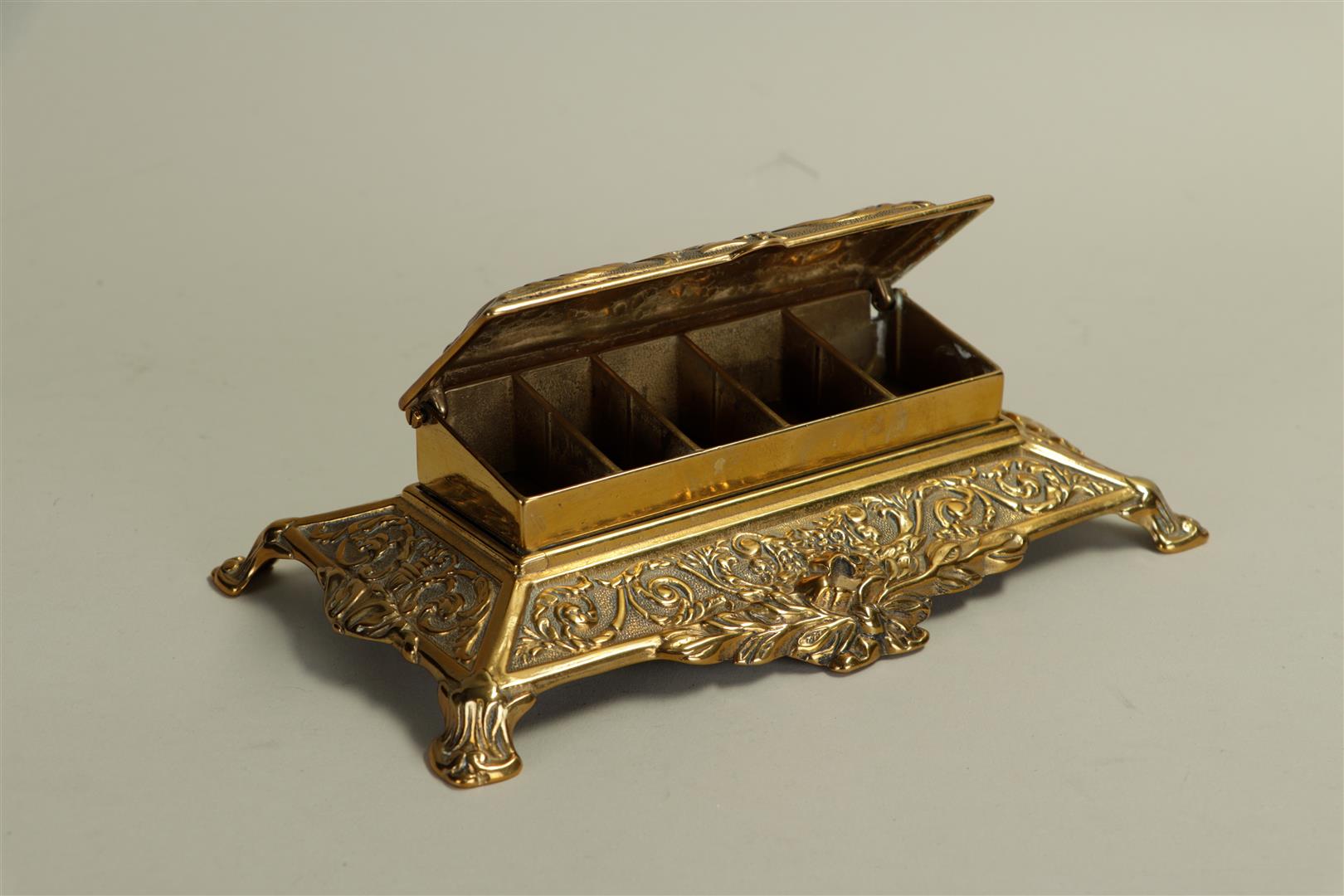An antique copper stamp tray in a classic model.
