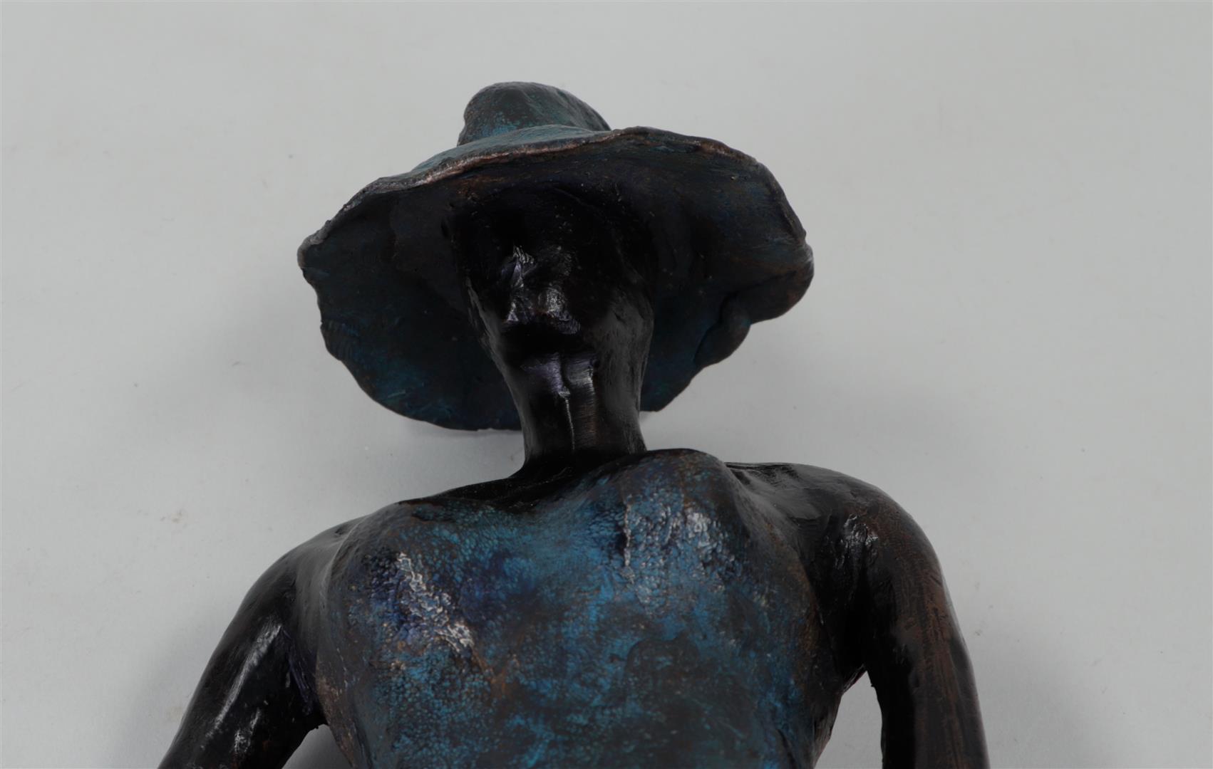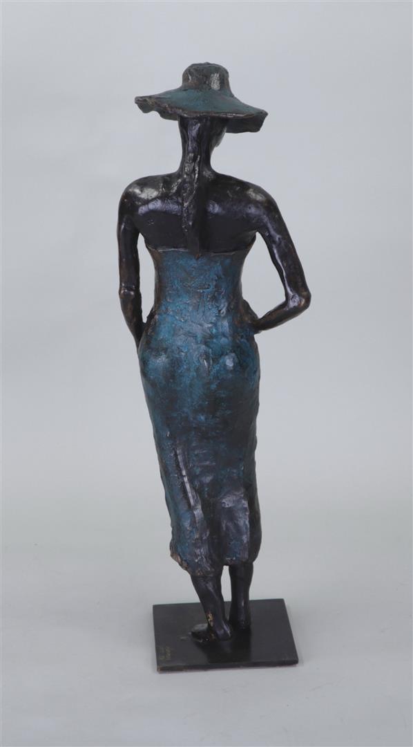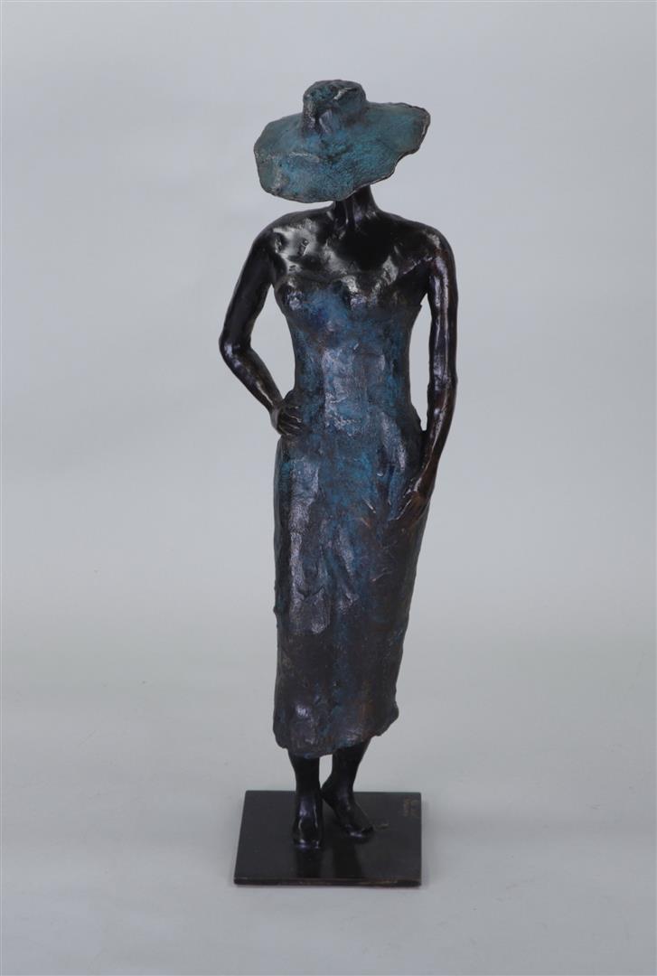 Hermus, 2008Standing woman in summer dress and hat, green and brown patinated...