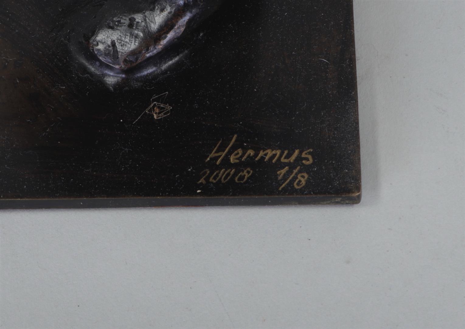 Hermus, 2008Standing woman in summer dress and hat, green and brown patinated bronze, signed and numbered in the base.