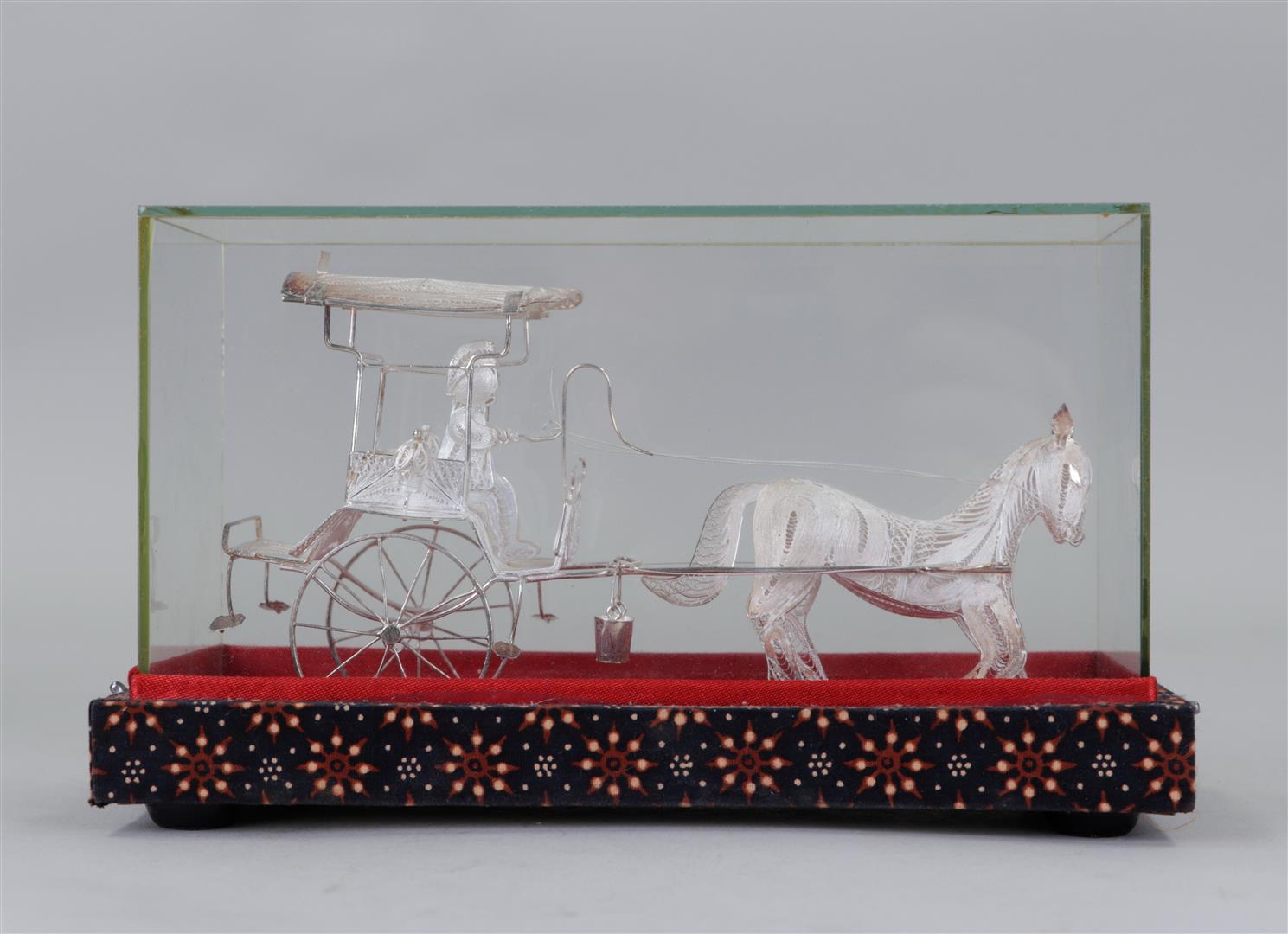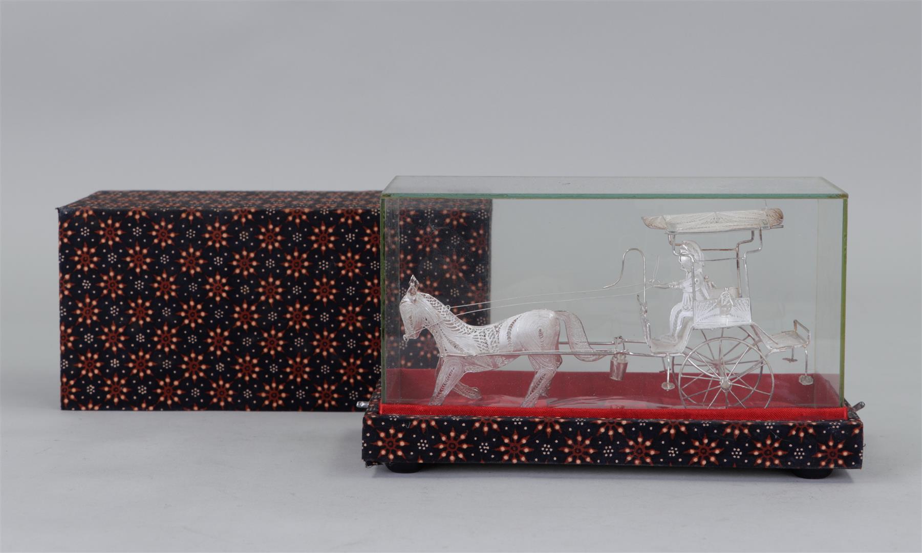 A filigree silver model of a horse with carriage. Indonesia, 20th century.