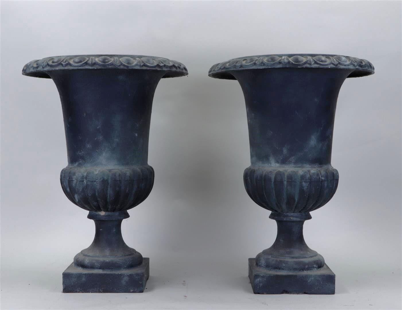 A set of (2) cast iron garden vases. 20th century.44 x 33 cm.