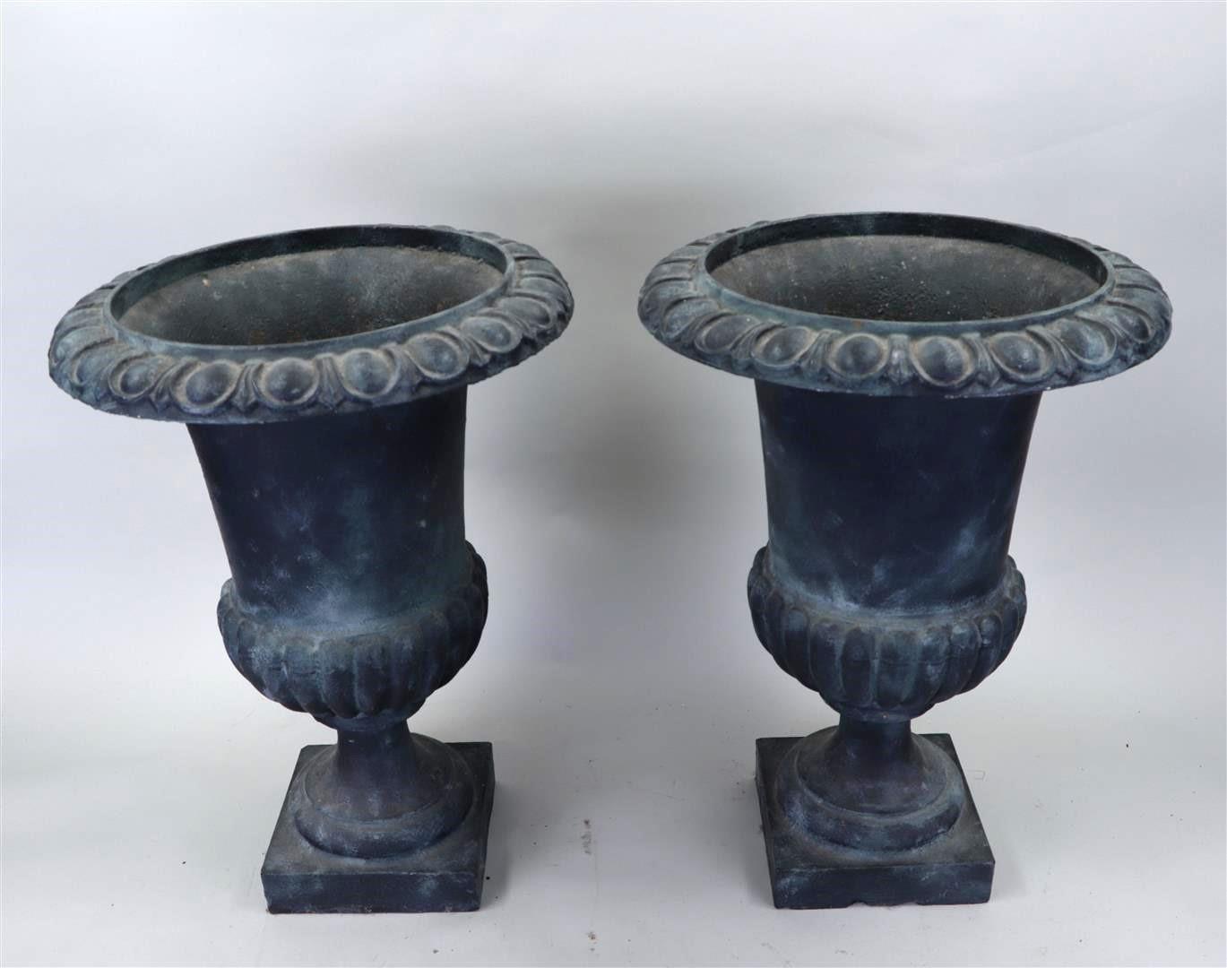 A set of (2) cast iron garden vases. 20th century.