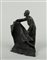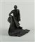 A bronze statue of an Arab carpet merchant, in Bergmann style.
