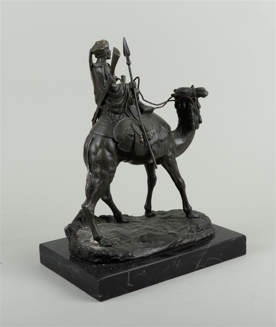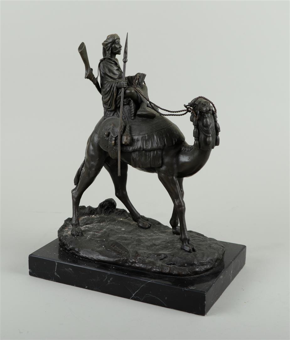 An oriental bronze statue of an Arabian on a dromedary, in the style of Alexandre Leonard.