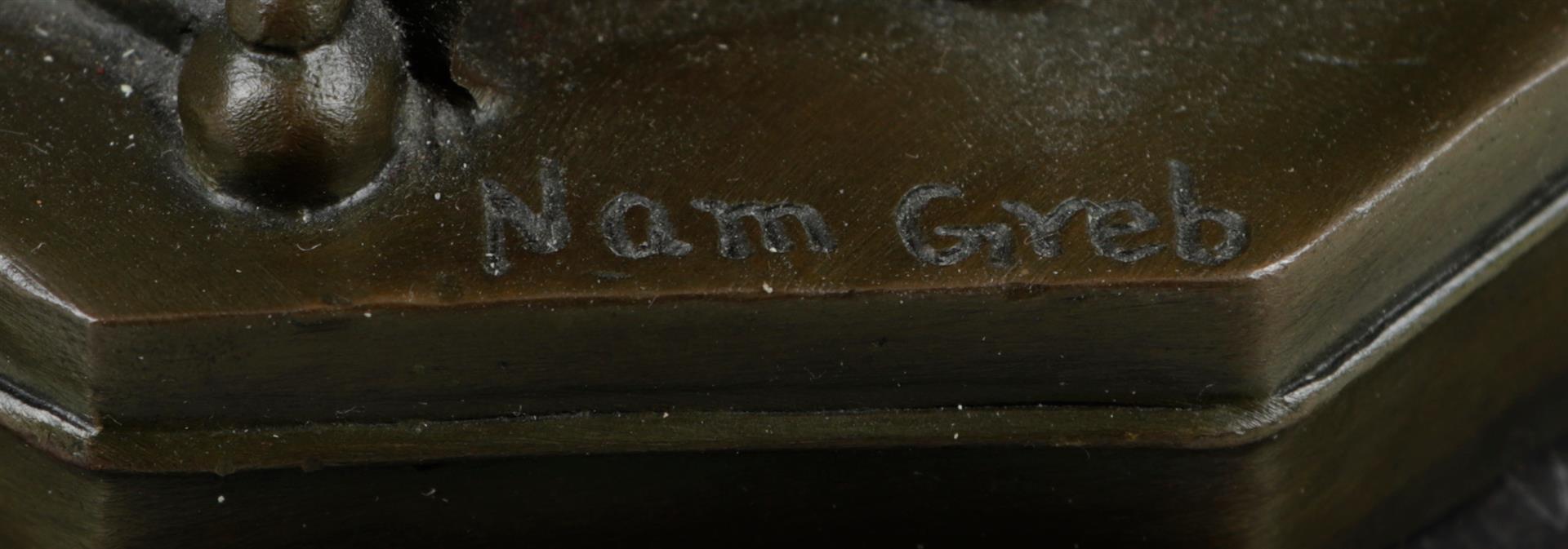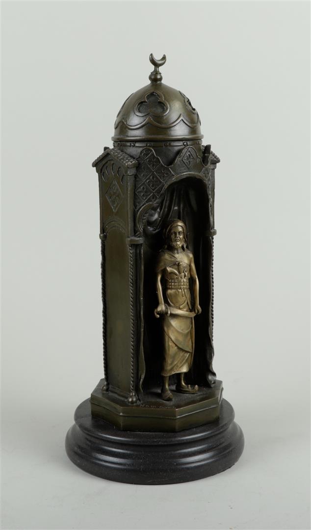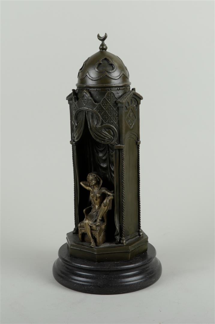 A bronze statue of a lady and an Arab in a dome tower, in Bergmann style.H....