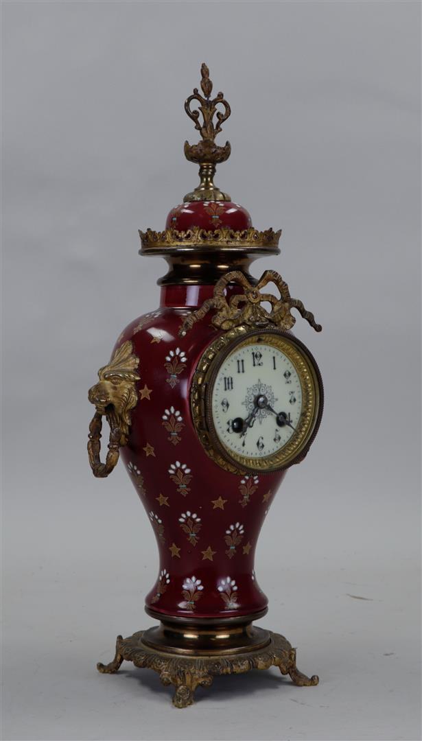 An earthenware clock with bronze ornaments. France, late 19th century.H. 42 cm.