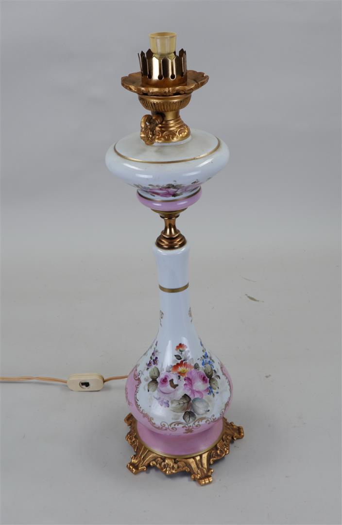 A large porcelain lamp base with bronze ornaments, marked: "Limoges". France, early 20th century.