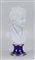 A biscuit bust of a young man on a blue porcelain base.