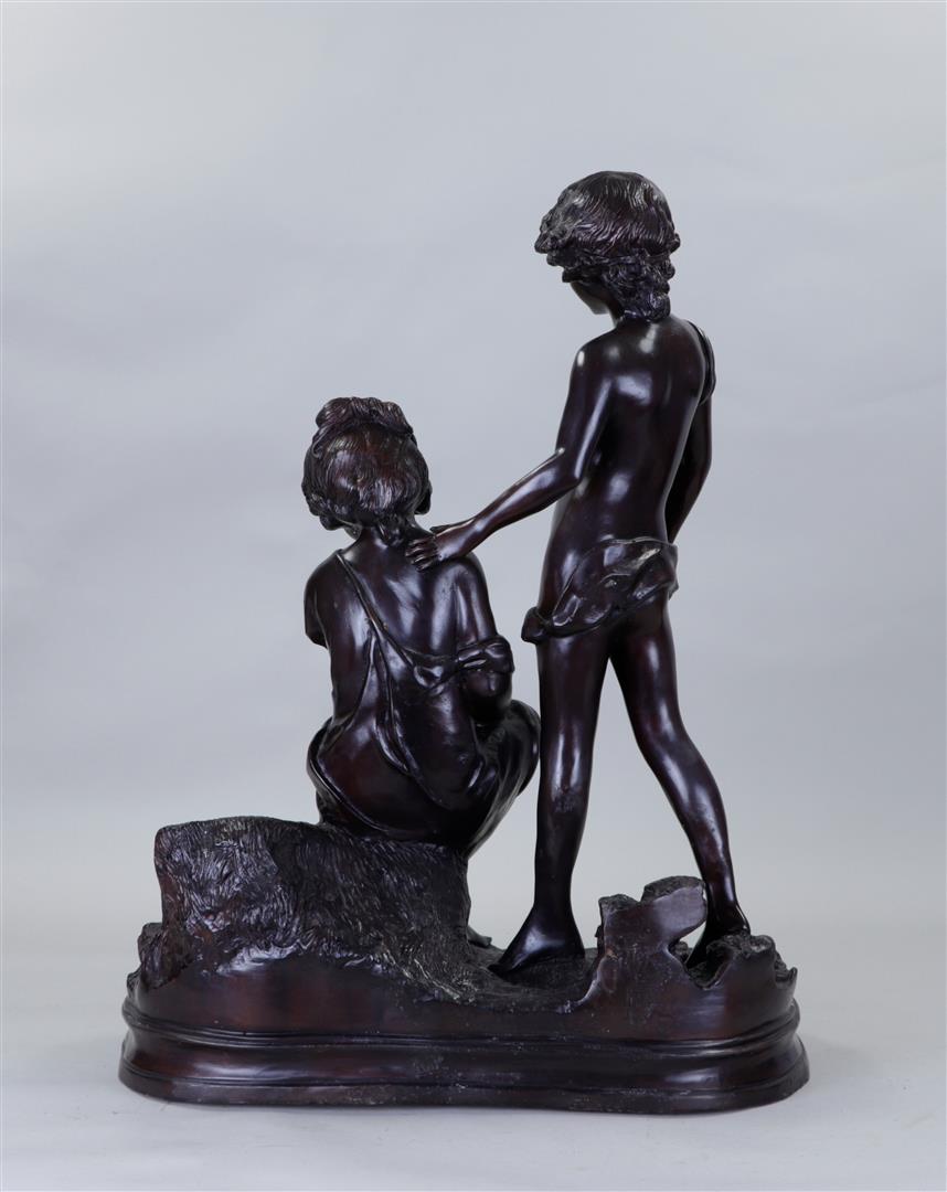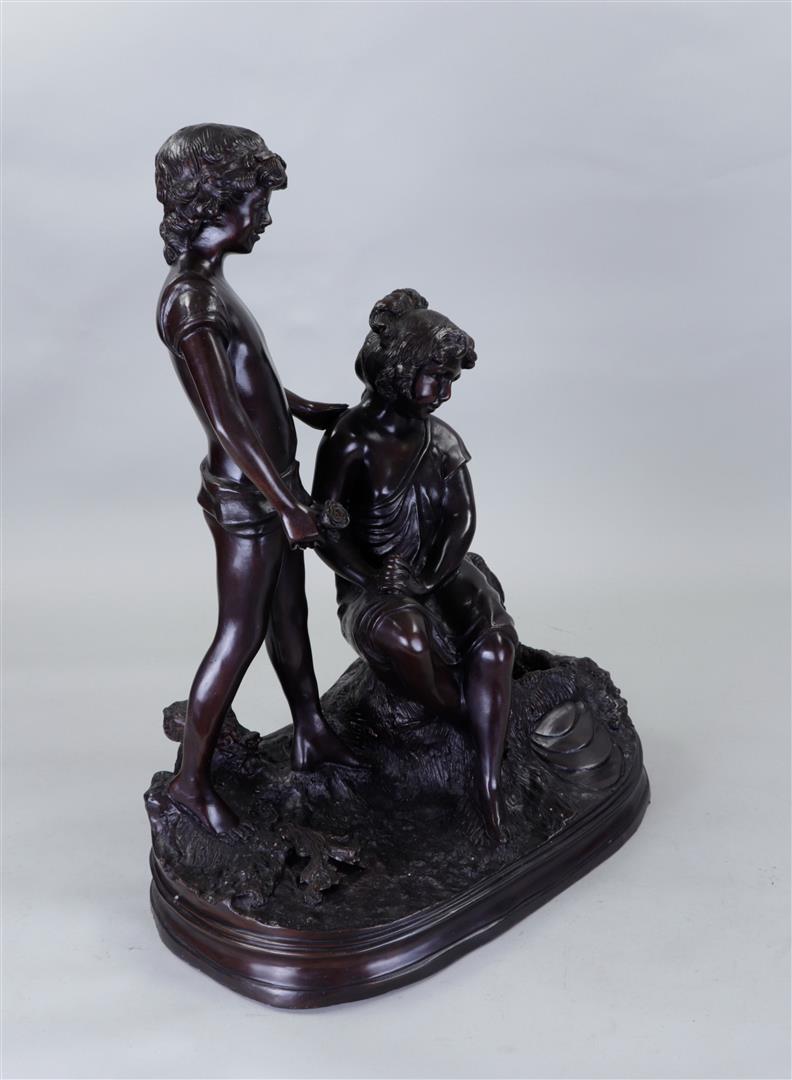 A large dark patinated bronze sculpture of a couple in love.57 x 44 cm.