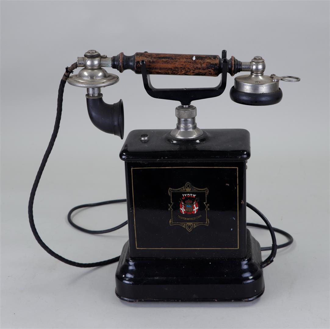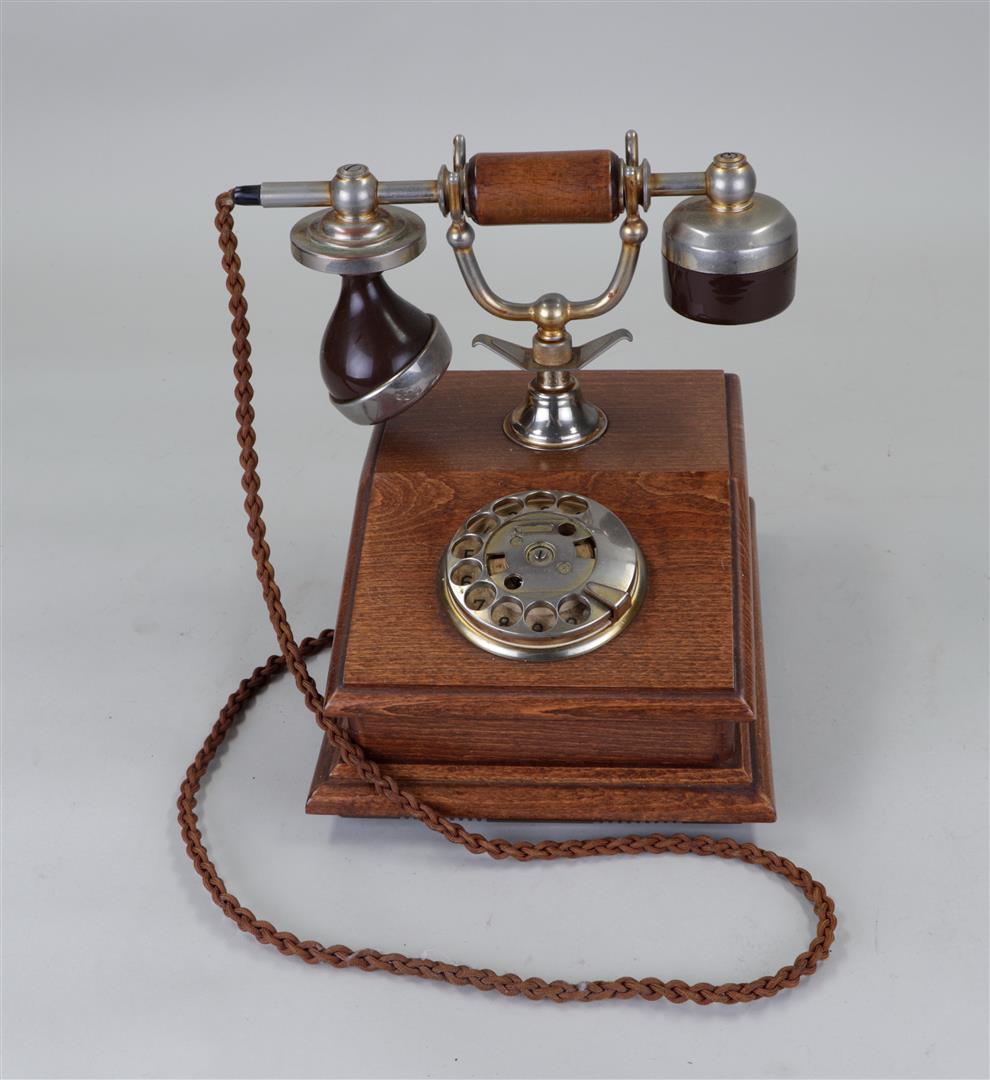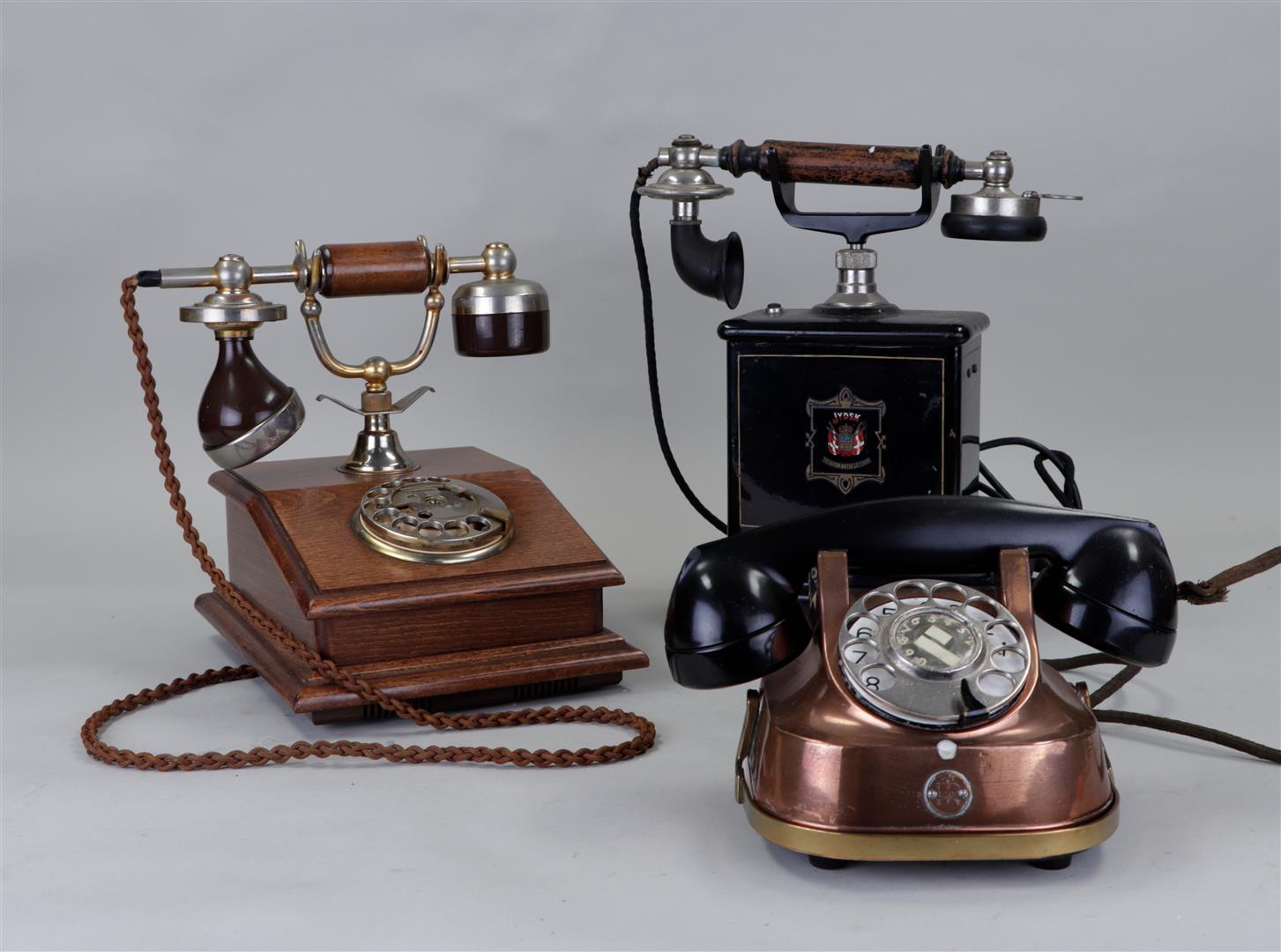 A lot of three antique telephones.
