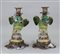 A set of polychrome painted earthenware candlesticks in the shape of a...