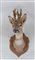 A stuffed head of a roe deer on a wooden shield.50 x 30 cm.