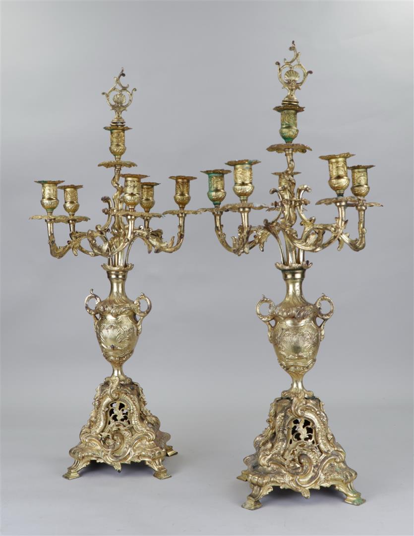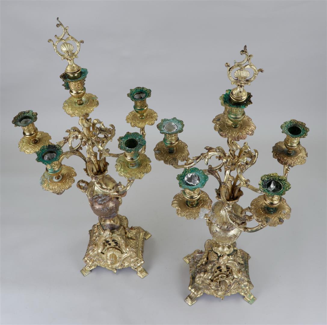 A set of two gilded 5-light candlesticks. France, circa 1900.H. 60 cm.