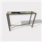 A bronzed metal side table with a facet cut glass top.110 x 70 cm.