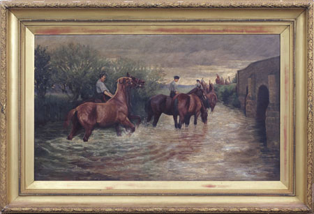 SCUOLA INGLESE DEL XIX SECOLO Cavalleria al guadoolio su tela cm. 76,5x127,...