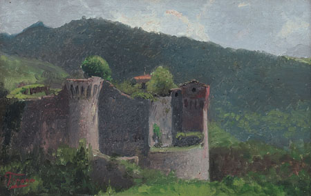 olio su tela applicata su cartone cm. 21x32,5; firma in basso a sinistra.