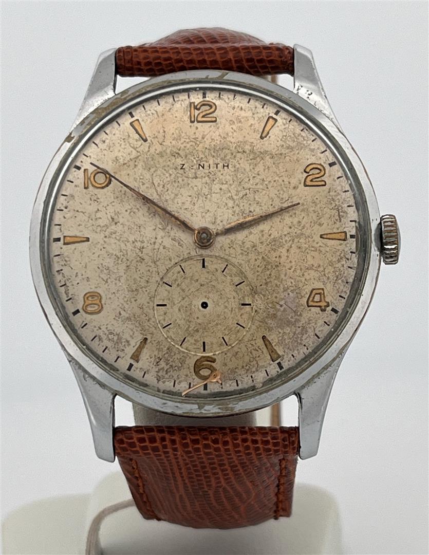 Men's watch, Zenith 8785986, leather strap, movement: Manual winding. Seconds hand is loose.