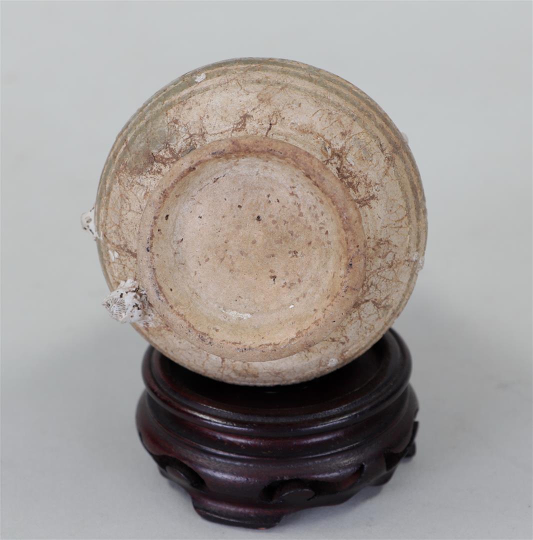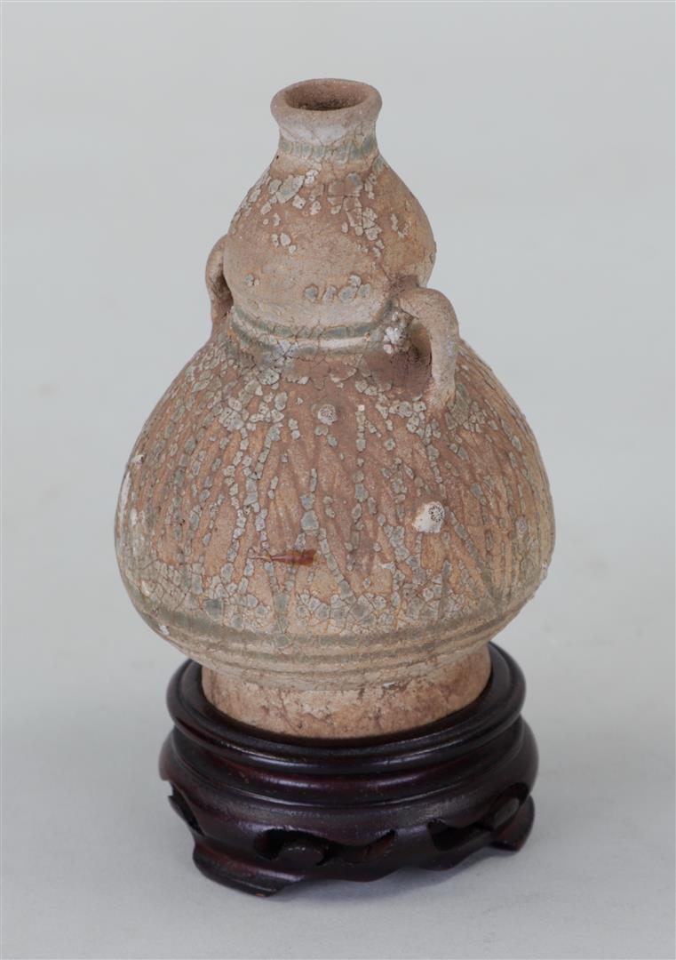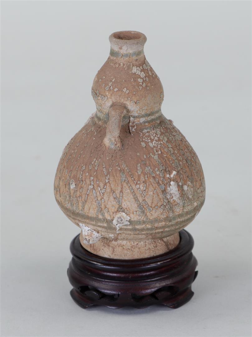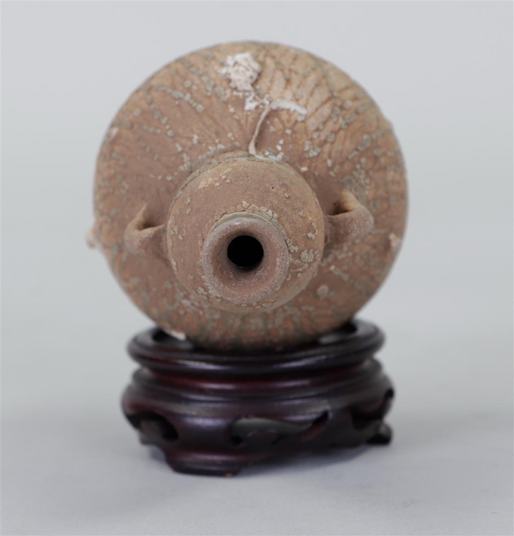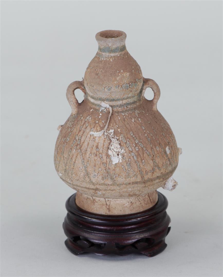 A stoneware amphora, sea find. 15th century?H. 13 cm.