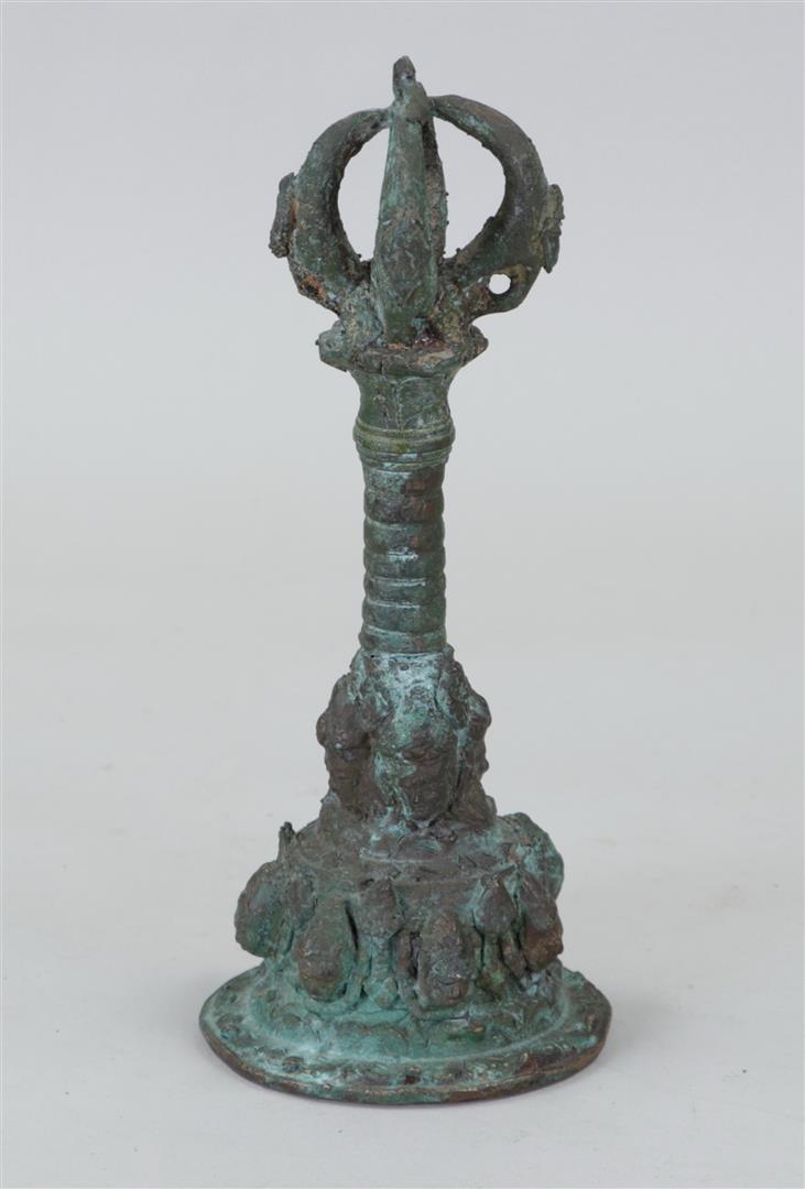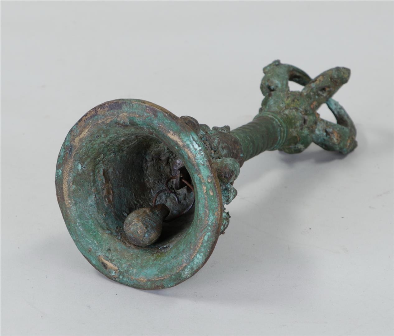 A bronze bell decorated with faces. Java.H. 23 cm.