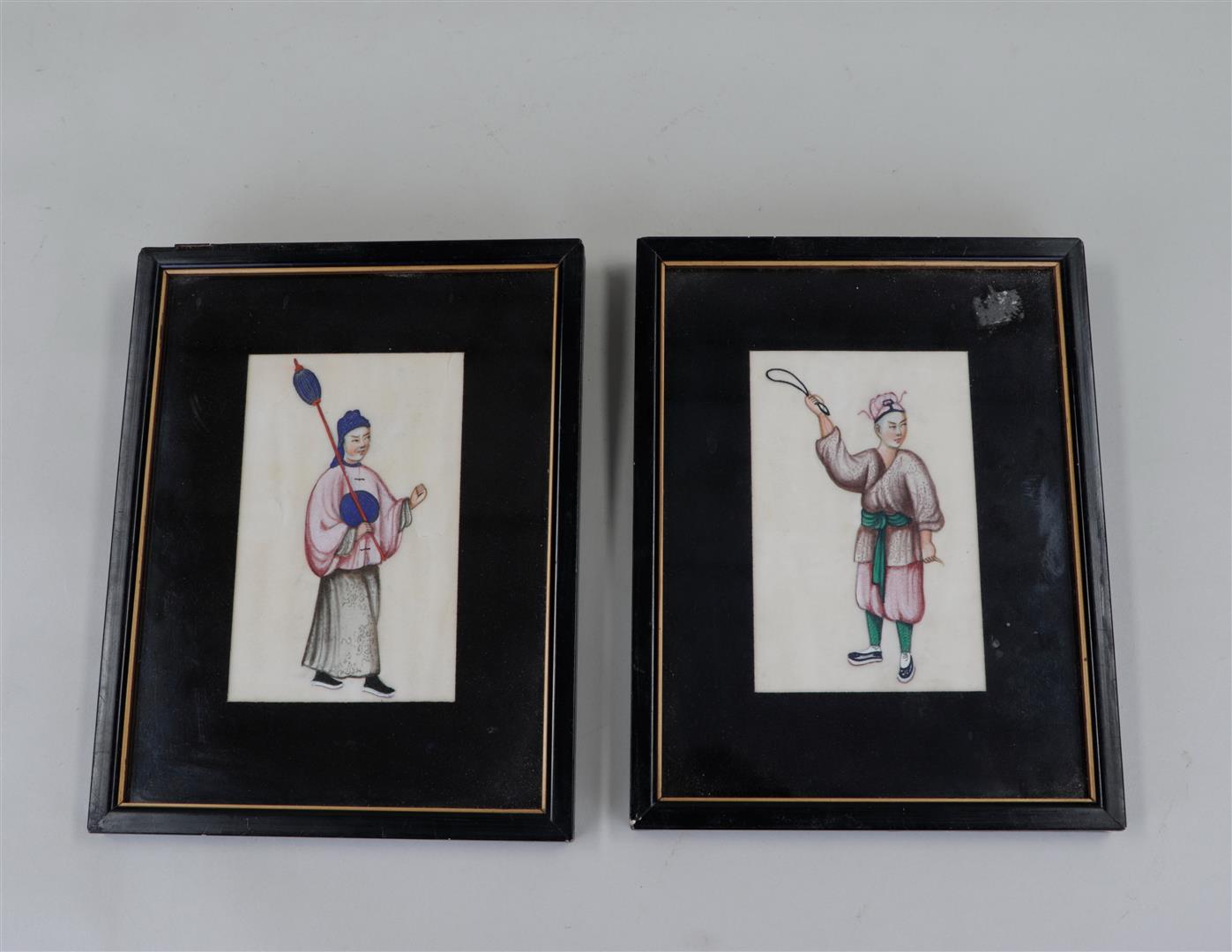 Two hand-painted portraits of Chinese figures. China, circa 1900.21 x 17 cm.