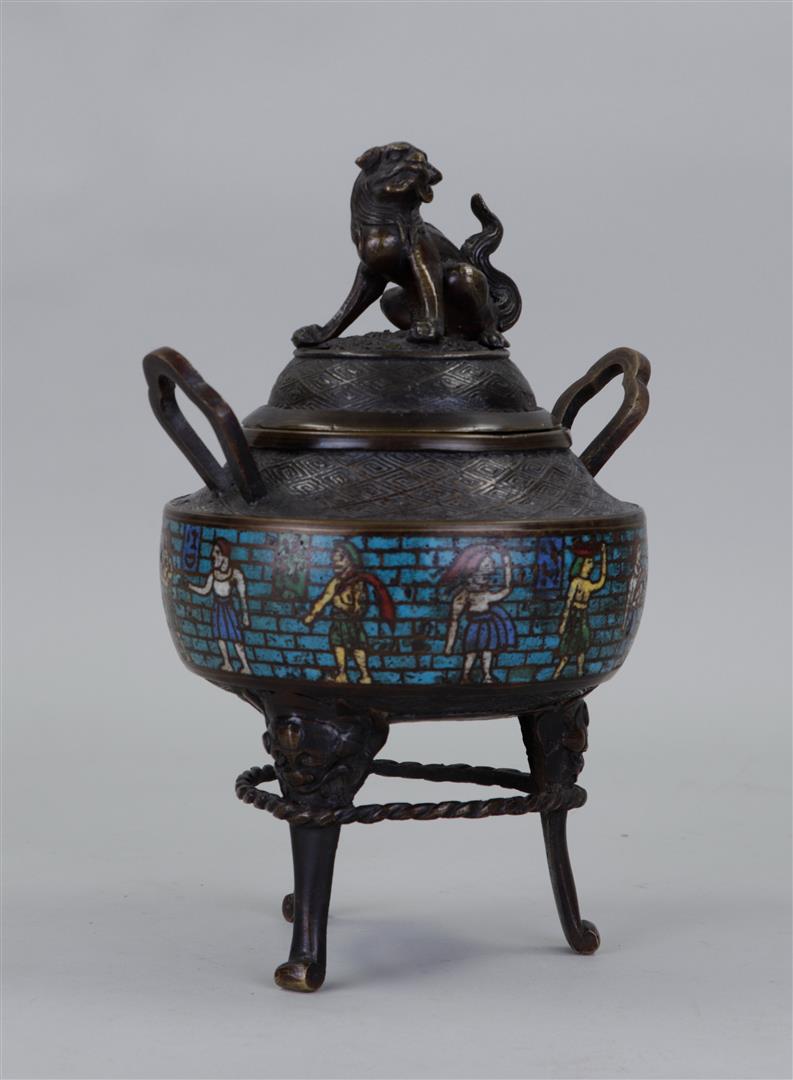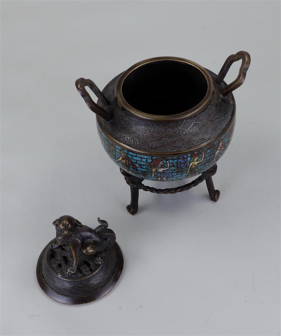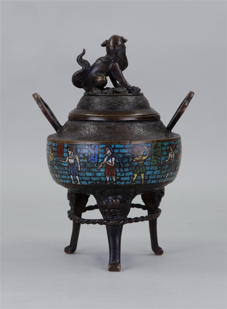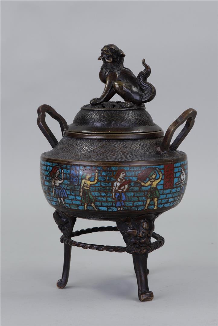 A bronze and cloisonne incense burner. China, 19th century.25 x 20 cm.