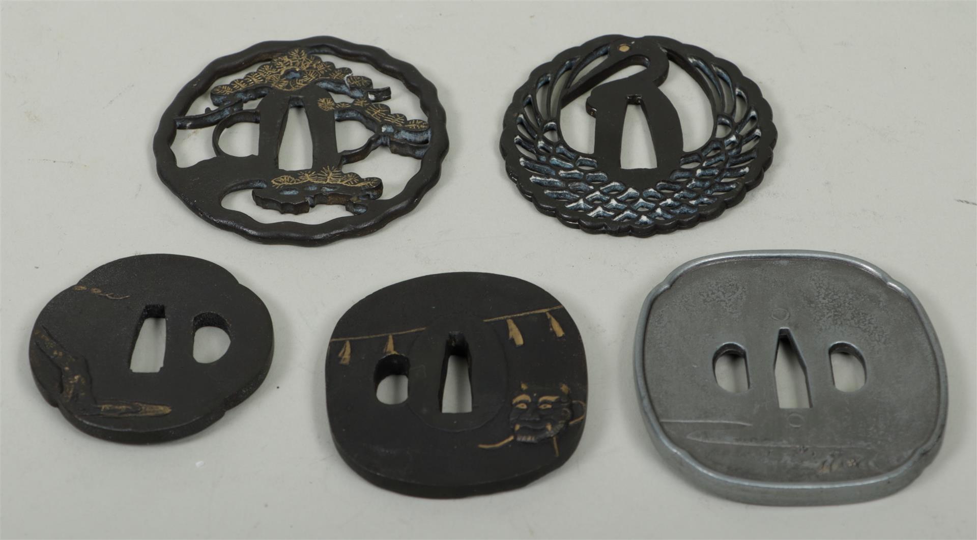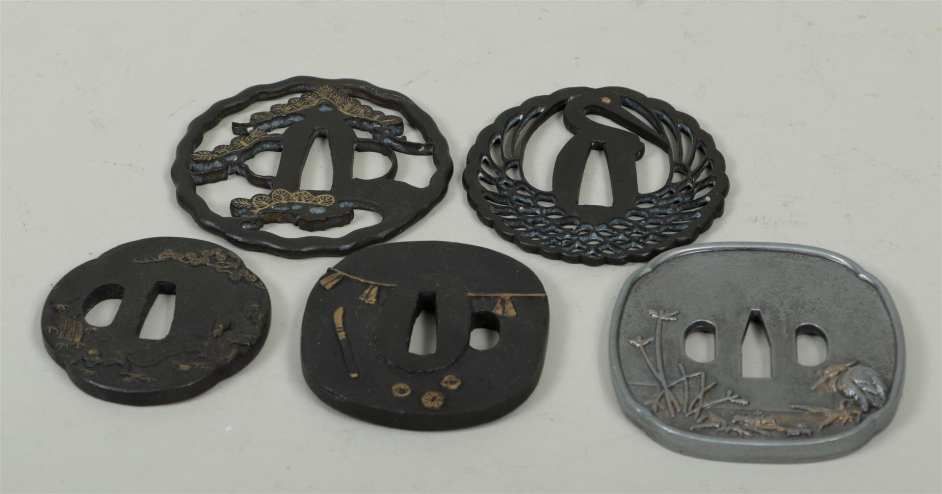 A lot consisting of (5) Japanese tsubas, 19th / 20th century.